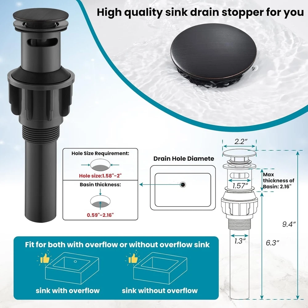 Vintage Style Bathroom Sink Faucet - Oil-Rubbed Bronze with Drain Included ‹ › ‹ › ‹ › ‹ › ‹ › ‹ › ‹ › ‹ › ‹ › ‹ › ‹ › Vintage Style Bathroom Sink Faucet - Oil-Rubbed Bronze with Drain Included Features: Constructed from solid brass structure with a multi-thickness nano electronic coating to prevent discoloration and rust. Warm and soft oil rubbed bronze finish that resists fingerprints and water stains. Two cross handles designed for precision control over water flow and temperature with a high sealing ceramic valve cartridge. Water flow rate of 1.18 GPM for optimal performance. Dimensions: Faucet height 6.5”, spout height 4.85”, spout length 7.48”; compatible with three holes measuring 6”-15.7”. Includes pre-drilled hole size of 1.1”-1.57”. What’s Included: Widespread bathroom faucet with 3/8" female threaded to M10 male hot and cold supply hoses. Pop up drain. Faucet body and all necessary hardware accessories. Installation manual for hassle-free setup. Transform Your Bathroom Elevate your bathroom with our Vintage Style Bathroom Sink Faucet, designed to bring timeless elegance and efficiency. Crafted from solid brass with a stunning oil-rubbed bronze finish, this faucet not only enhances the aesthetics of your space but also promises durability and ease of use. With its user-friendly design featuring two cross handles and a ceramic valve cartridge, controlling the water flow and temperature is a breeze. The included pop-up drain and hardware ensure that your installation is as seamless as your faucet’s operation. Why Choose Our Vintage Faucet? This faucet is the ideal combination of style and practicality. The sophisticated oil-rubbed bronze finish allows for easy maintenance while resisting fingerprints and water stains. Your bathroom will not only look gorgeous but also be functional and easy to clean. Invest in elegance and functionality today—your bathroom deserves it. Order your Vintage Style Bathroom Sink Faucet now and experience the luxurious upgrade! Shipping Free & Fast Shipping - We offer free shipping to most of the USA with a normal delivery time of 3-7 days. However, due to the current situation, additional delivery time (up to 3 weeks) may be required for some items. Alternative Carriers - We may use alternative carriers (e.g. USPS, FedEx, UPS, etc.) to ensure your package arrives safely and on time. Due to the use of multiple carriers, we are unable to provide a tracking number automatically. Handling Time - Orders are processed and shipped within 1-2 business days of receiving cleared payment. Shipping Restrictions - Shipping to Alaska, Hawaii, Puerto Rico, Guam, and other US territories may incur shipping charges or delivery restrictions. Please contact us before ordering, or your order can be refunded/cancelled. State Restrictions - There may be restrictions based on your state of purchase. For example, certain items may not be shipped to California due to state regulations. Contact for Tracking Updates - If you require tracking updates or have any concerns about the delivery of your order, please feel free to contact us, and we will be happy to assist you. Return 30-Day Hassle-Free Returns - We want you to be completely satisfied with your purchase. If you are not, you can return the item within 30 days of receiving it for a full refund or exchange. Easy Return Process - To start a return, simply contact us and we will provide you with a prepaid return shipping label and detailed instructions. Restocking Fee - There are no restocking fees for returns. However, the buyer is responsible for return shipping costs if the return is not due to a seller's error. Refund Processing Time - Refunds will be processed within 5 business days of receiving the returned item in its original condition. Payment We accept all major credit cards, PayPal, and Apple Pay for your convenience. Your payment information is secure and encrypted to ensure a safe and seamless transaction. Please complete your payment within 3 days of purchase to avoid any delays in shipping. Feedback Your feedback is extremely important to us. We strive to provide the best products and customer service possible. If you are satisfied with your purchase, please take a moment to leave us a positive review. If you have any concerns or issues with your order, please contact us before leaving negative feedback. We are committed to resolving any problems and ensuring your satisfaction. Contact Us If you have any questions or concerns, please feel free to reach out to our customer support team. You can contact us through the eBay messaging system. We are available Monday to Friday, 9:00 am to 5:00 pm EST, and we will do our best to respond to your inquiry within 24 hours. Buy it now and enjoy a pleasant shopping experience! UPC: Not Set Item Weight: 4.7 Model: Not Set Unit Quantity: 1 Material: Brass Suitable For: Bathroom Sink Features: Water Conservation,Pop Up Drain Labels & Certifications: Not Set Room: Bathroom Items Included: Pop Up Drain,Faucet Body,Hose,Instruction Manual Brand: Unbranded Number of Faucet Holes: 3 Number of Faucet Handles: 2 Finish: Oil-Rubbed Color: Oil Rubbed Bronze Faucet Mounting Type: Deck Mount Type: Bathroom Sink Faucet Shape: Non-Swivel Spout Handle Type: Knob Item Height: Not Set Item Width: Not Set Item Length: Not Set Faucet Hole Spacing: 1.1"-1.57" Installation: Widespread Spout Height: 4.85 Inches Manufacturer Warranty: Not Set MPN: Not Set Manufacturer: Not Set Number in Pack: 1 Product Line: Not Set Style: Traditional Country/Region of Manufacture: Not Set Unit Type: lb Assembly Required: Not Set