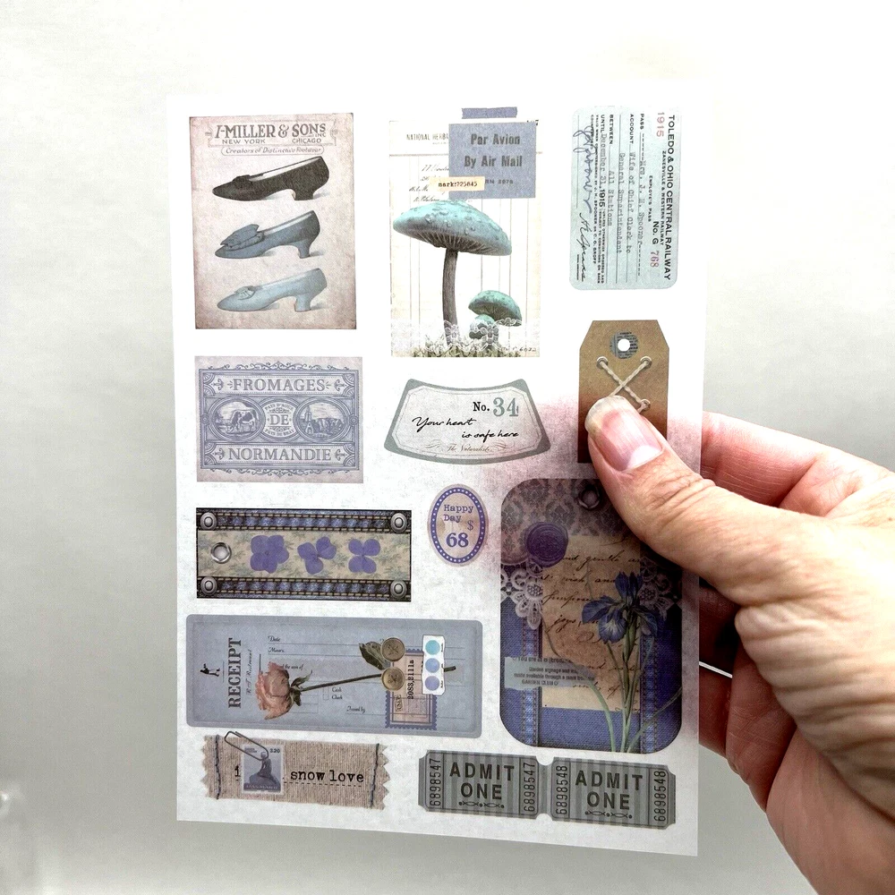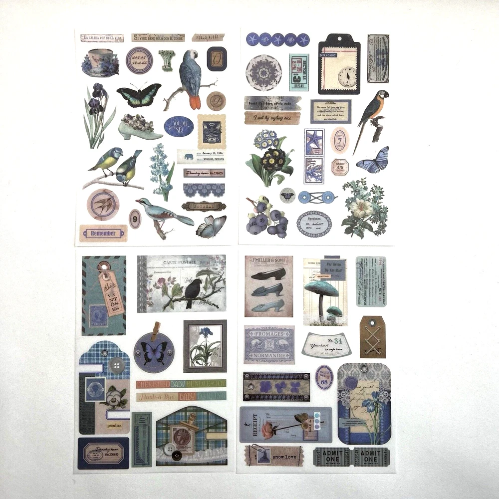 Vintage Style Blue Garden Washi Paper Stickers 4 Sheets Junk Journal Collage