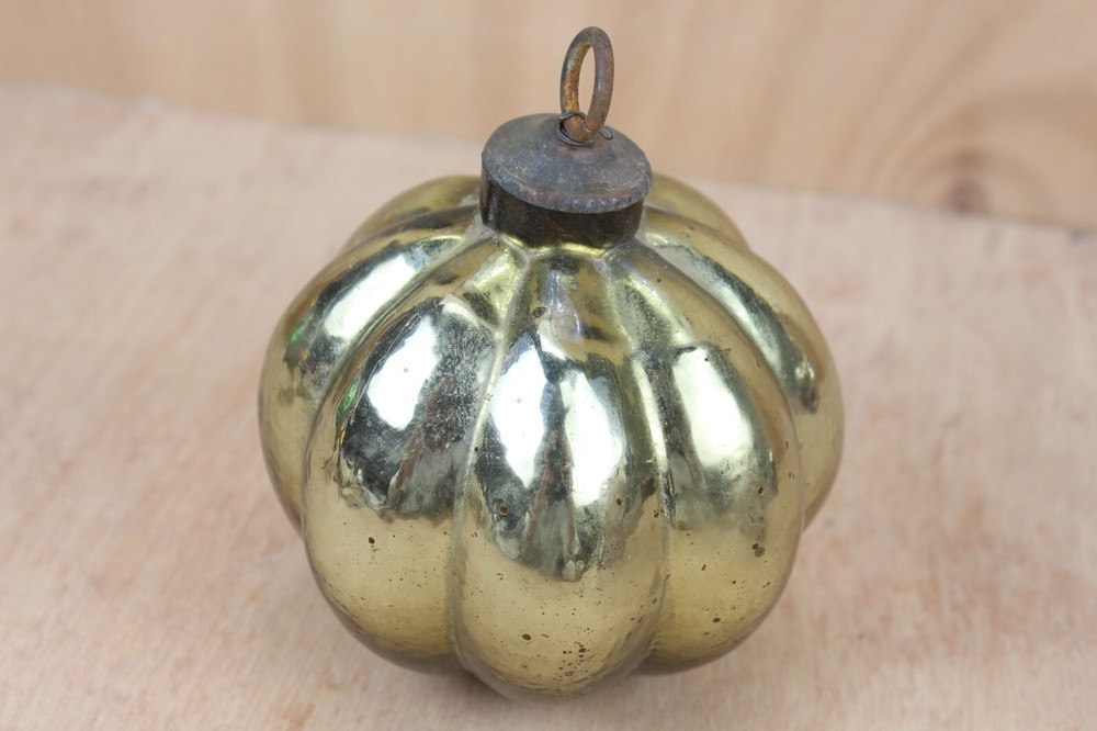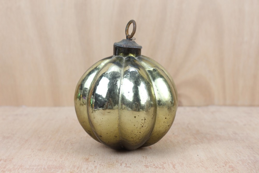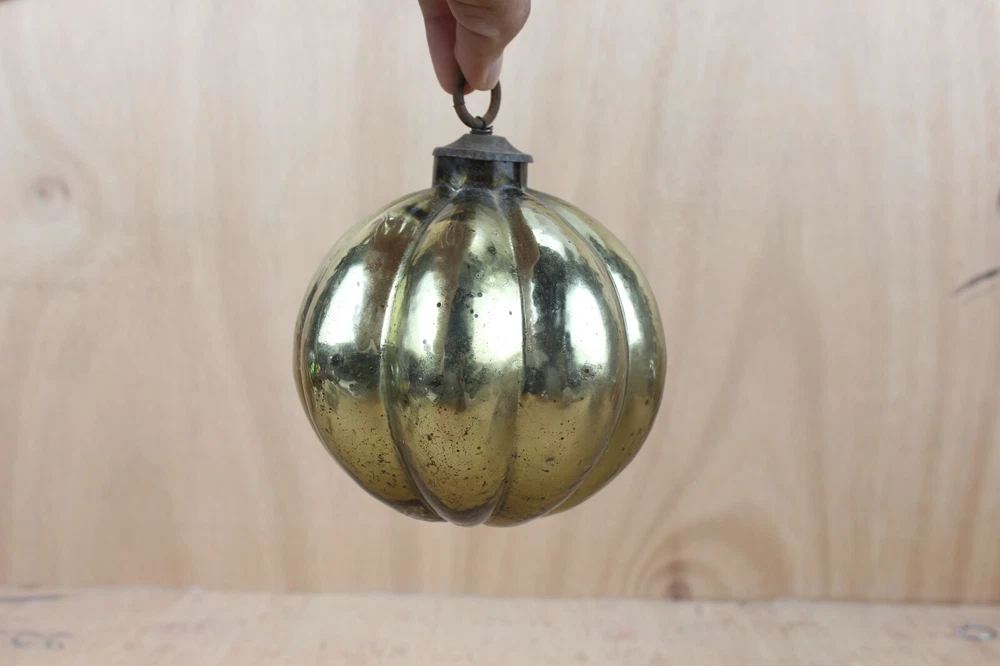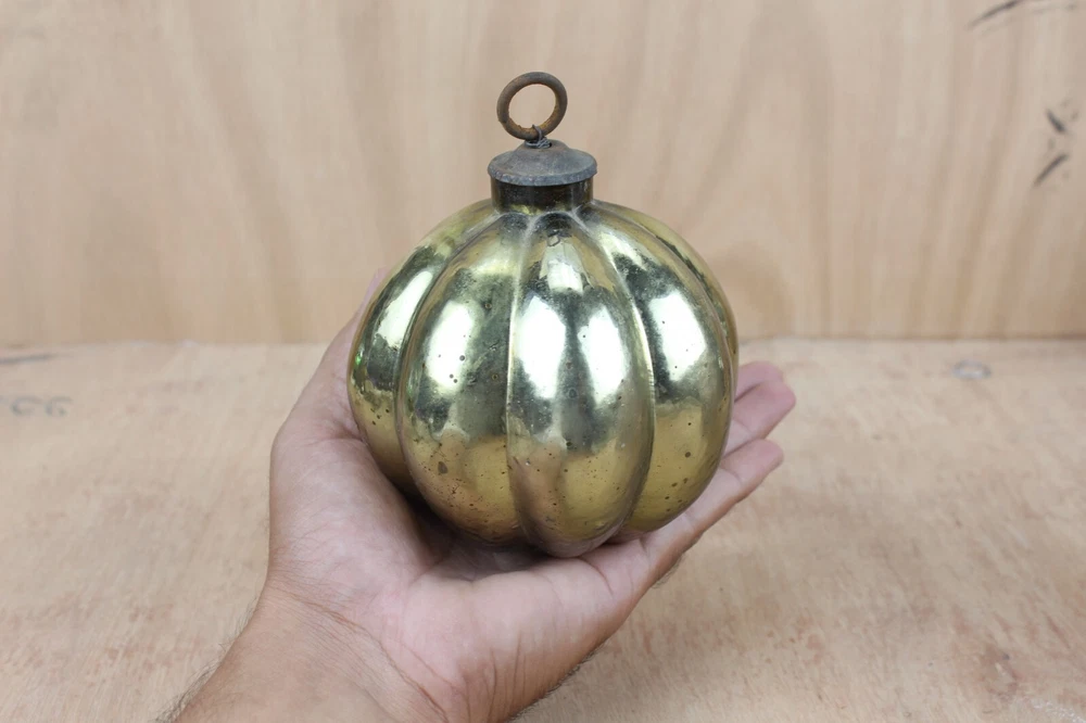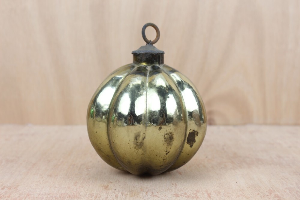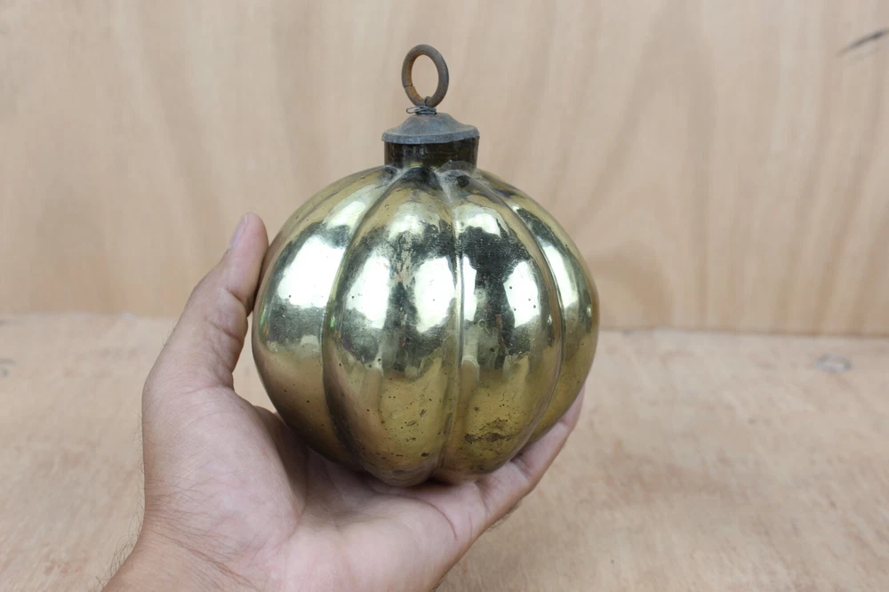 "Welcome to the Store of Eastern Art And History" Item Description Add a touch of timeless elegance to your holiday collection with this stunning gold mercury glass kugel ornament. Designed in a vintage style, this pumpkin-shaped piece features a reflective finish that catches and reflects light beautifully. Whether displayed on a traditional Christmas tree or used as part of a sophisticated fall centerpiece, its classic aesthetic brings warmth and charm to your home decor. The ornament is crafted to emulate the heavy, high-quality feel of traditional kugels. Dimensions: 12.1 x 10.9 x 10.9 CM (4.76 x 4.29 x 4.29 Inches) Weight: 156 Grams (0.34 Pounds) Product Details: Material: Mercury Glass Condition: New (Vintage Style) Features: Reflective gold finish, sturdy metal hanging cap, decorative pumpkin ribbing. Perfect for: Christmas tree decoration, Thanksgiving table settings, or vintage-inspired holiday displays. Contact us Feel free to reach out to us anytime through eBay messages if you have any questions, comments, or specific product requests. We value your inquiries and are here to assist you. We encourage our customers to get in touch with us for any questions or concerns. Your satisfaction is our top priority, and we want to ensure you are completely happy with your purchase .