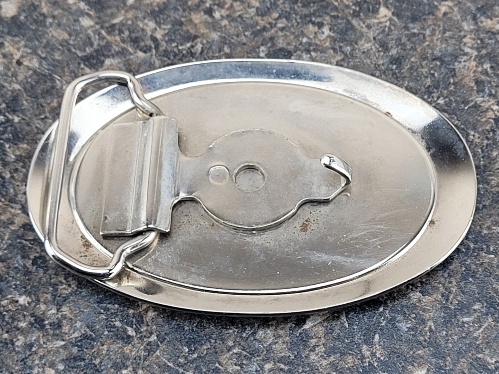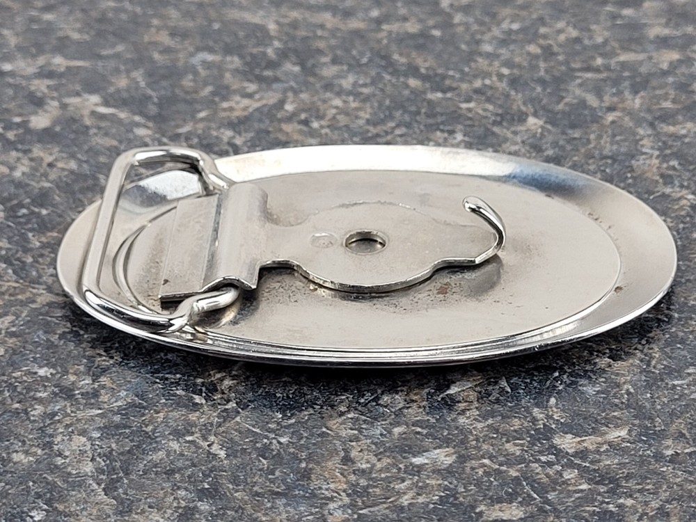 This belt buckle is approximately 9.5 cm x 6.5 cm.