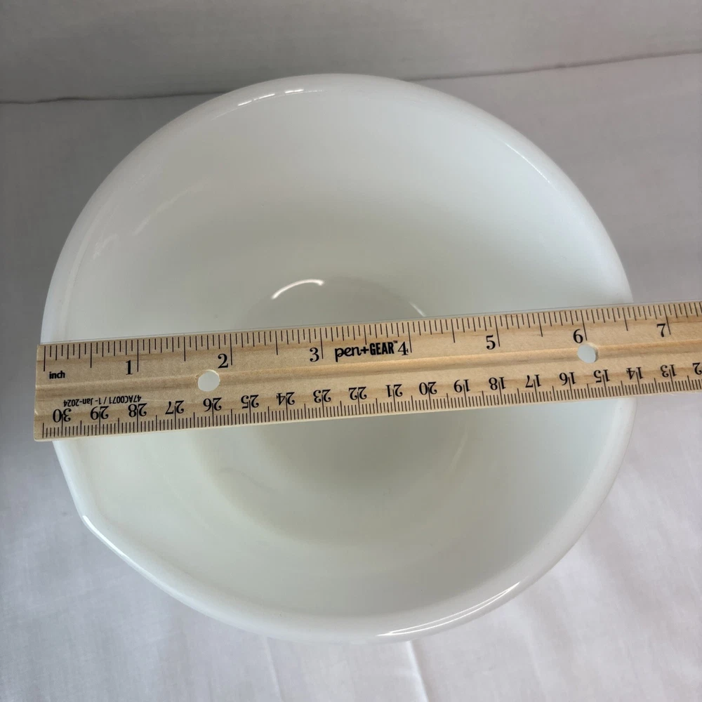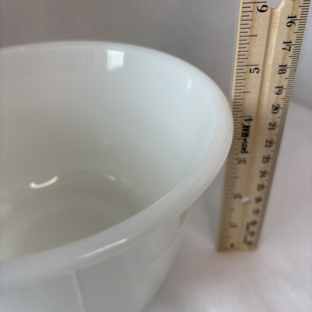 Shape: Round Item Height: 7 in Brand: Unbranded Style: Mid-Century Modern Original/Reproduction: Original Color: White Pattern: Solid Country/Region of Manufacture: United States Material: Glass Type: Mixing Bowl