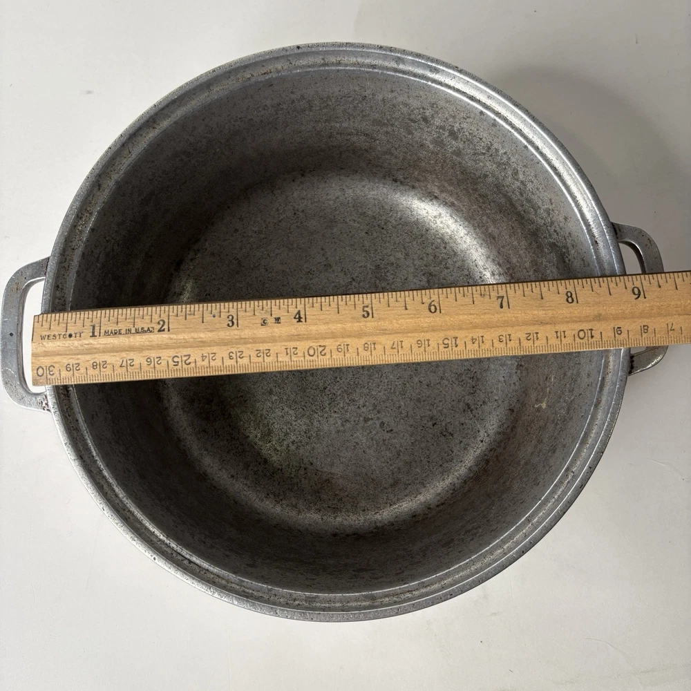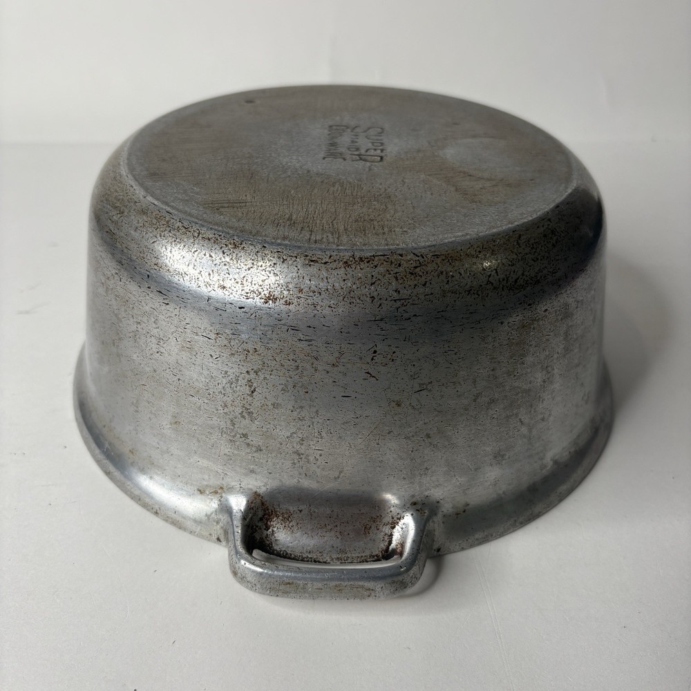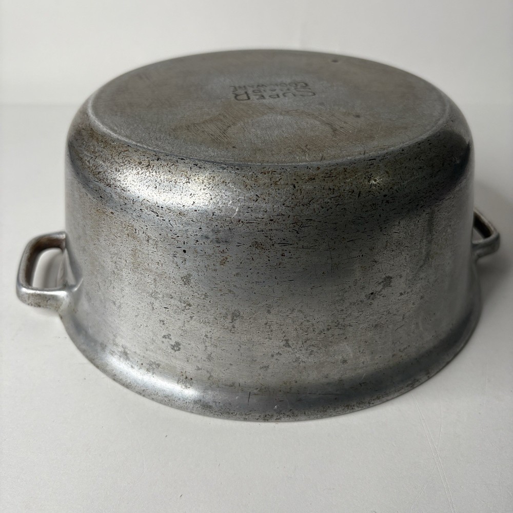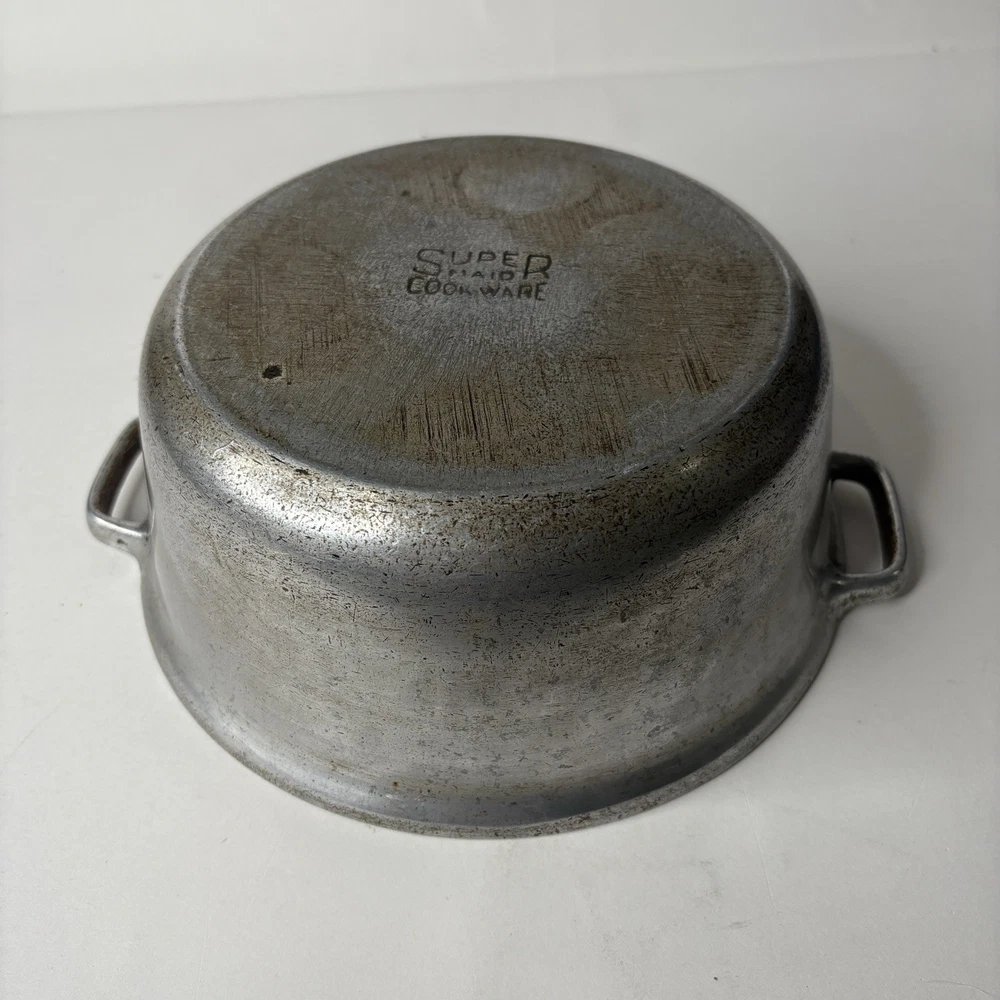 Super Maid Cookware Pot Vintage 8.75" x 3.5" Dutch Oven Pan Bottom preowned vintage condition shows some wear throughout - see photos about 8.75" D x 3.5" high appears to be the bottom of a dutch oven set B 1 12.0