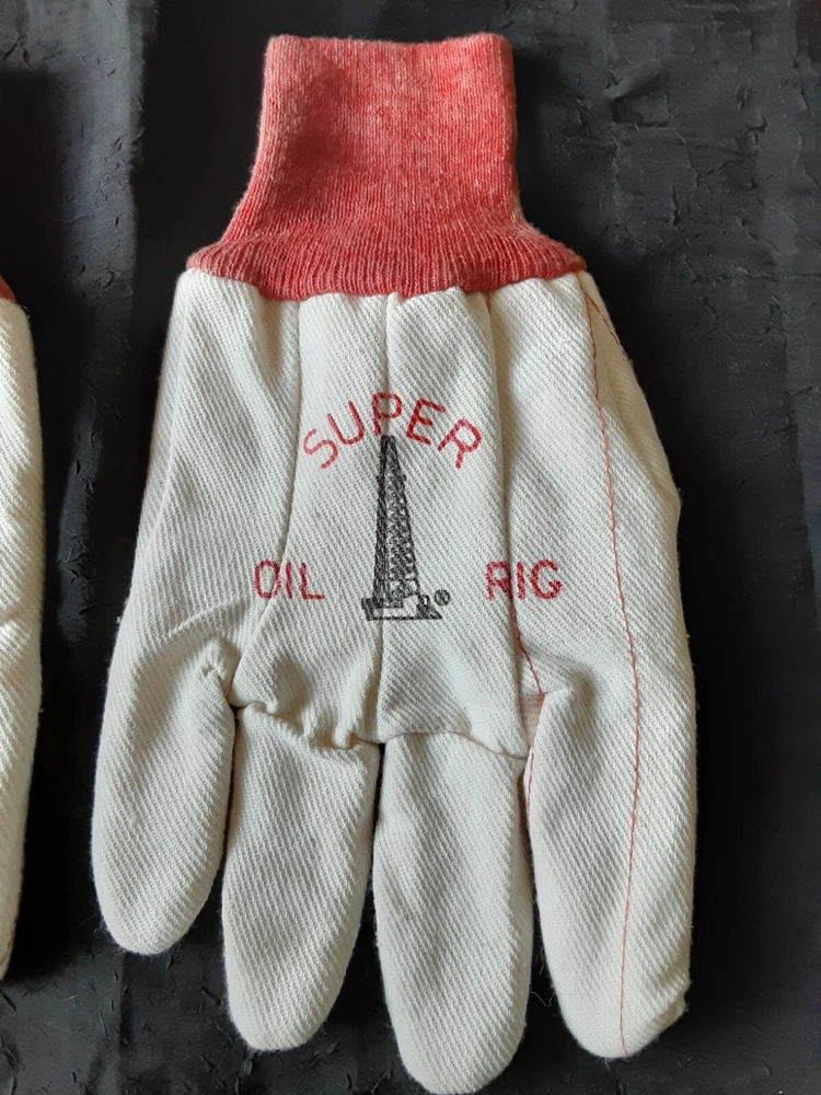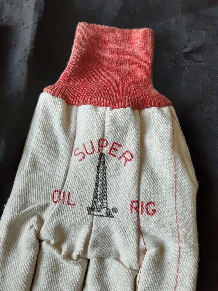 Vintage white heavy cotton work gloves that are insulated. One of them has "Super Oil Rig" imprinted on the top side. They are not sized or branded but are adult size. The measurements are in the photos. Very good condition. Please make payments within three (3) days of auction close. I ship daily. As soon as you pay most times. Always happy to combine shipping when possible. Please contact me before payment for invoice on combined items. I try very hard to describe items accurately and put in plenty of photos. If you have any questions, please just ask. Most of my items are pre-owned and not always by me. If they are washable they will arrive clean but I don't wash some vintage items. Also, non smoking home . If you have any problem with a purchase please contact me so I may have the opportunity to make your purchase satisfactory. Thanks and happy hunting !!