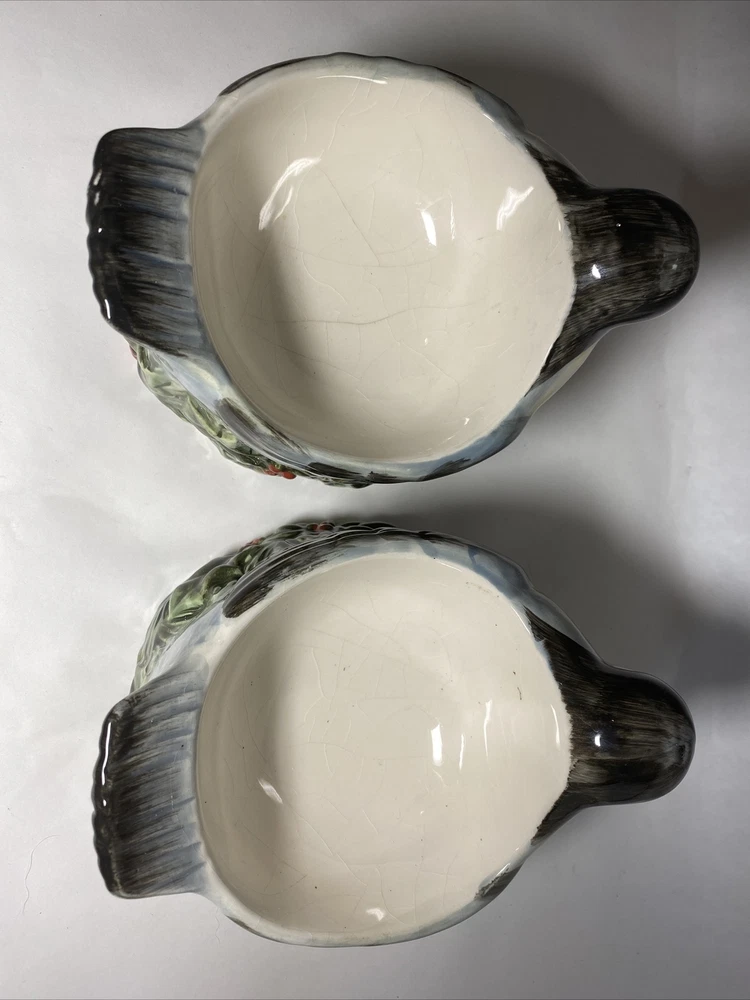 Vintage Susan Winget Ceramic Bird Shaped Candy Nut Dish Bowl Set Of 2 - 6.5” W.