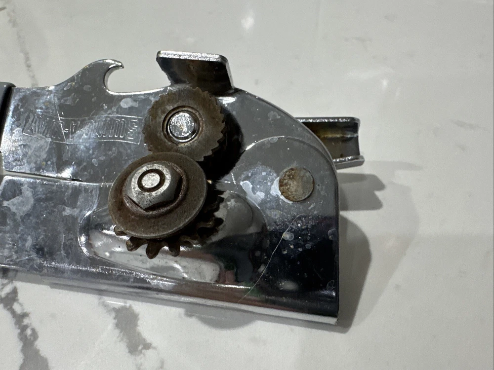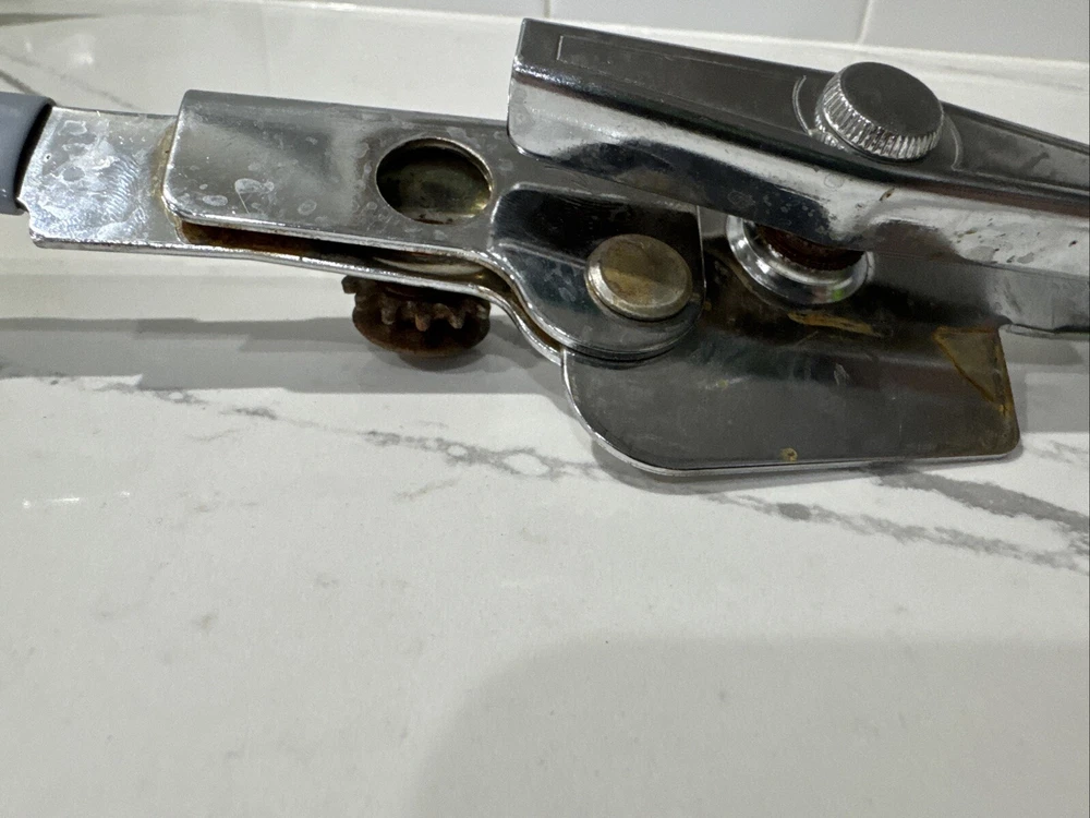Vintage Swing-A-Way Can Opener Bottle White Grips Manual 7” USA Away