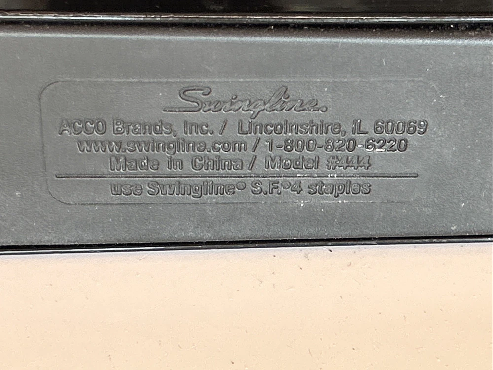 Brand:SwinglineCalifornia Prop 65 Warning:naModified Item:NoMPN:Does Not ApplyModel:444Stapler Type:Standard StaplerFeatures:Metal, Retro, Vintagegtin13:Does not applyCountry of Origin:United StatesCustom Bundle:NoUPC:Does not apply