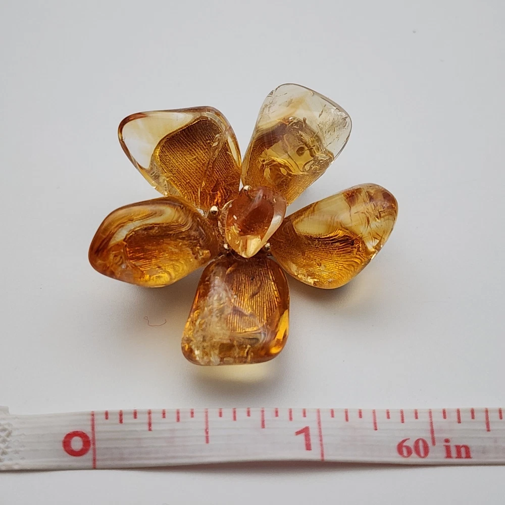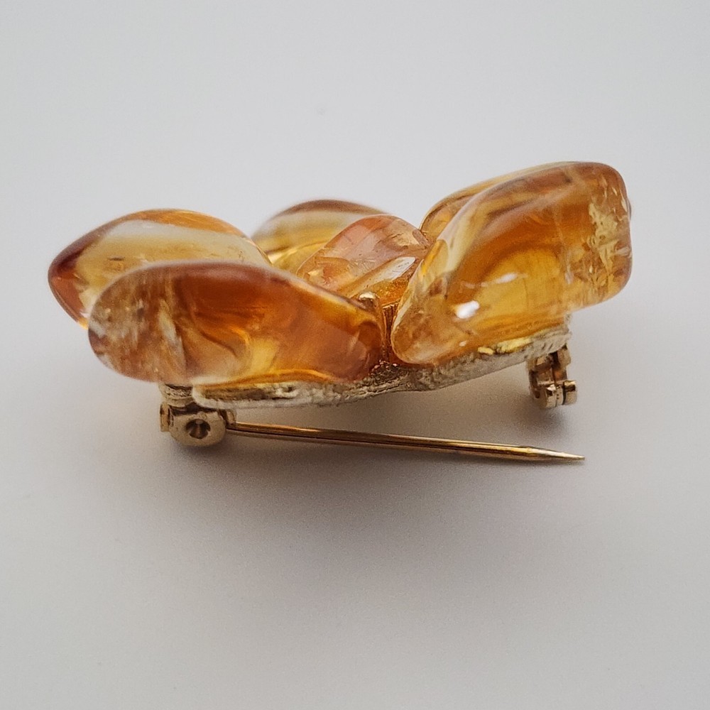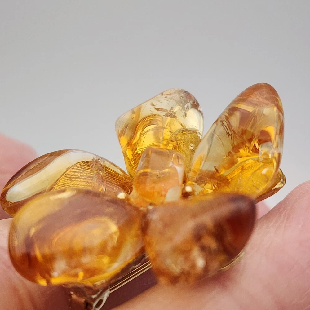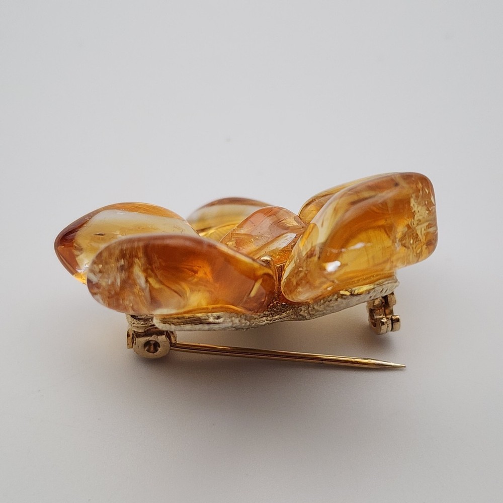 Vtg Flower Unsigned SWOBODA Tumbled Citrine Stone Gold Plate Brooch Pin 1.5"