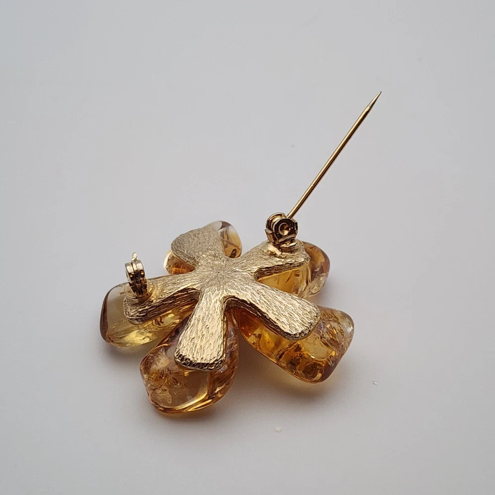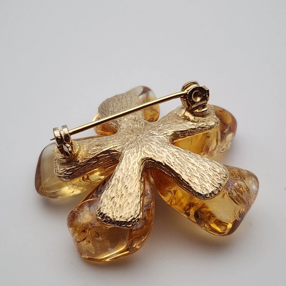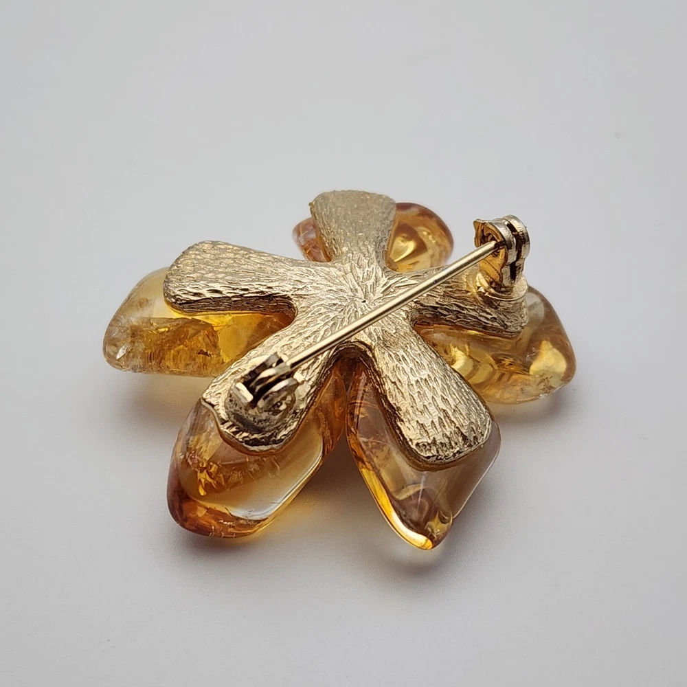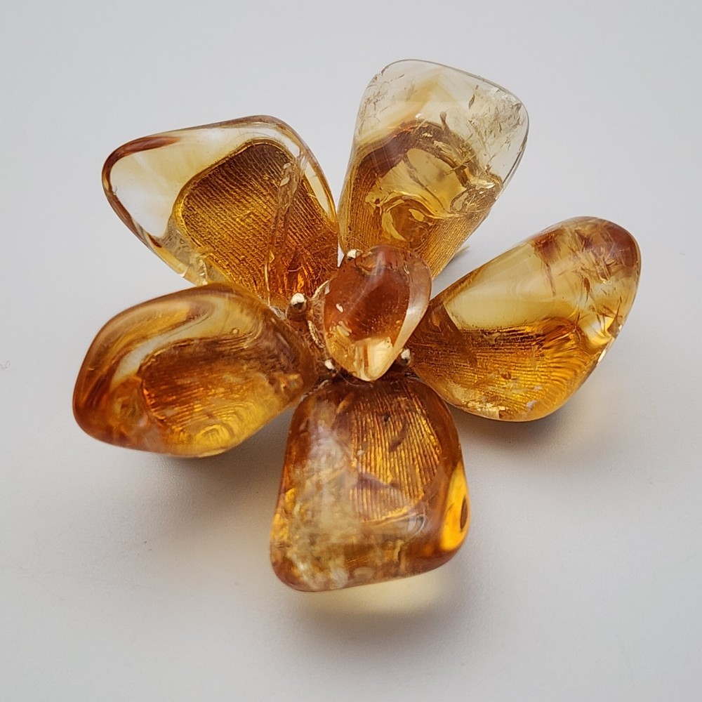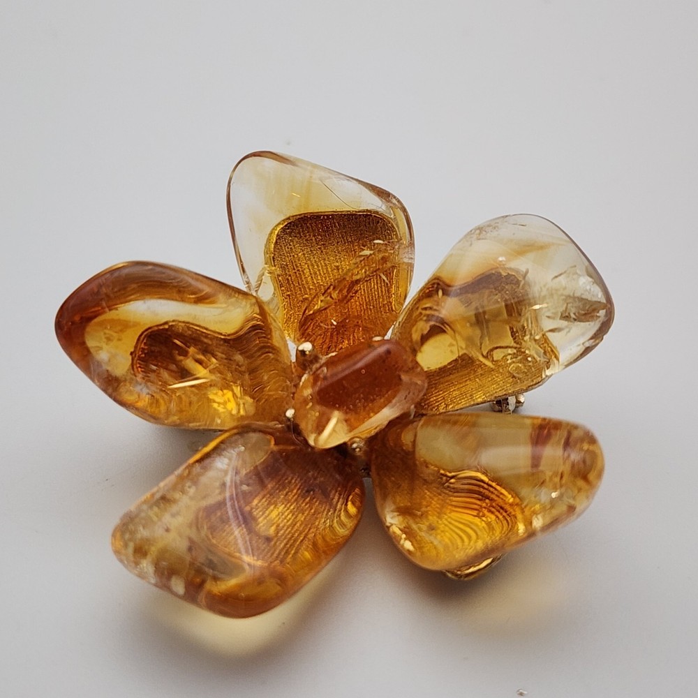 Vtg Flower Unsigned SWOBODA Tumbled Citrine Stone Gold Plate Brooch Pin 1.5"