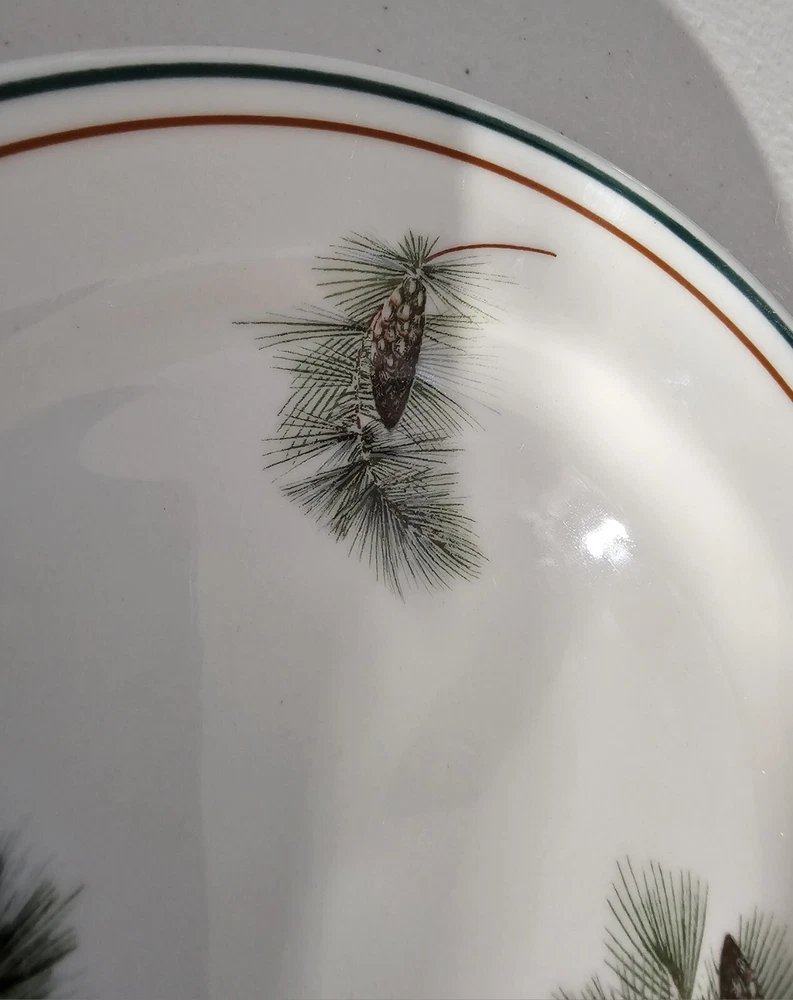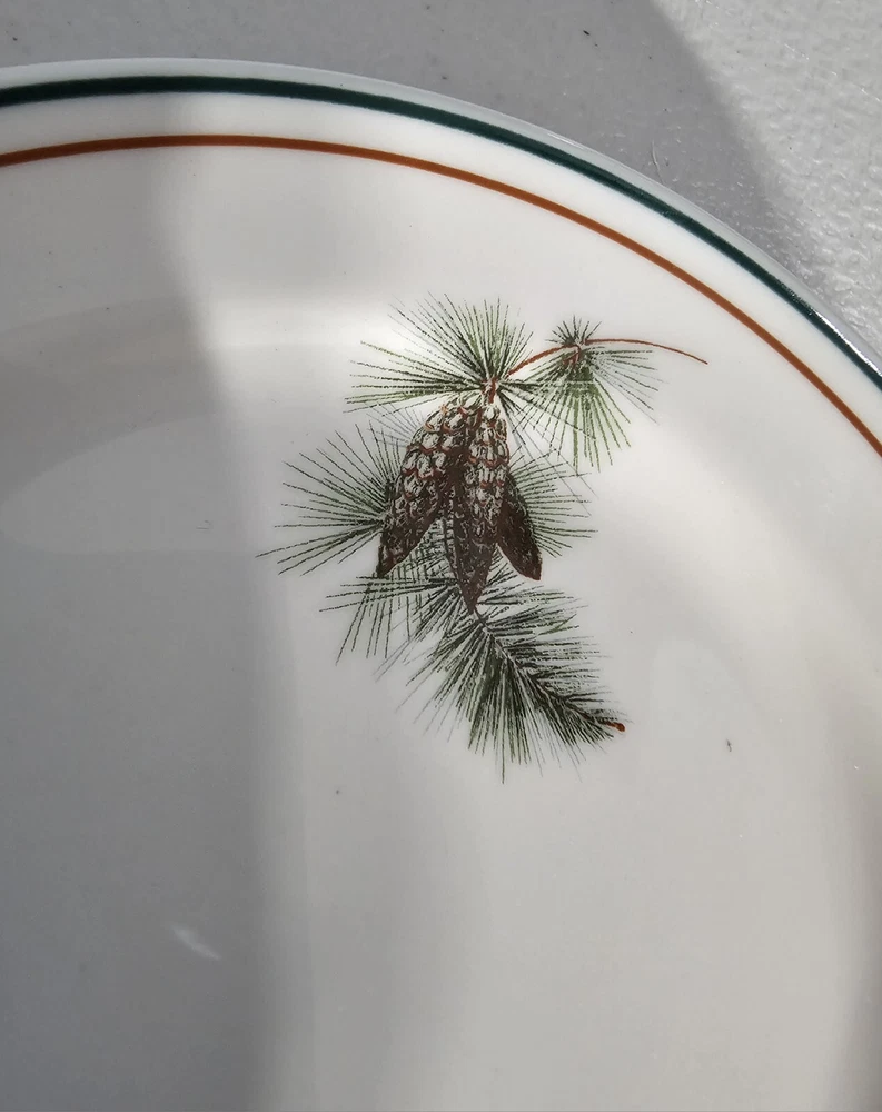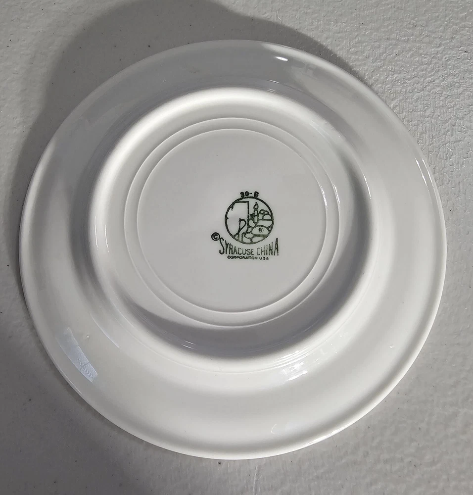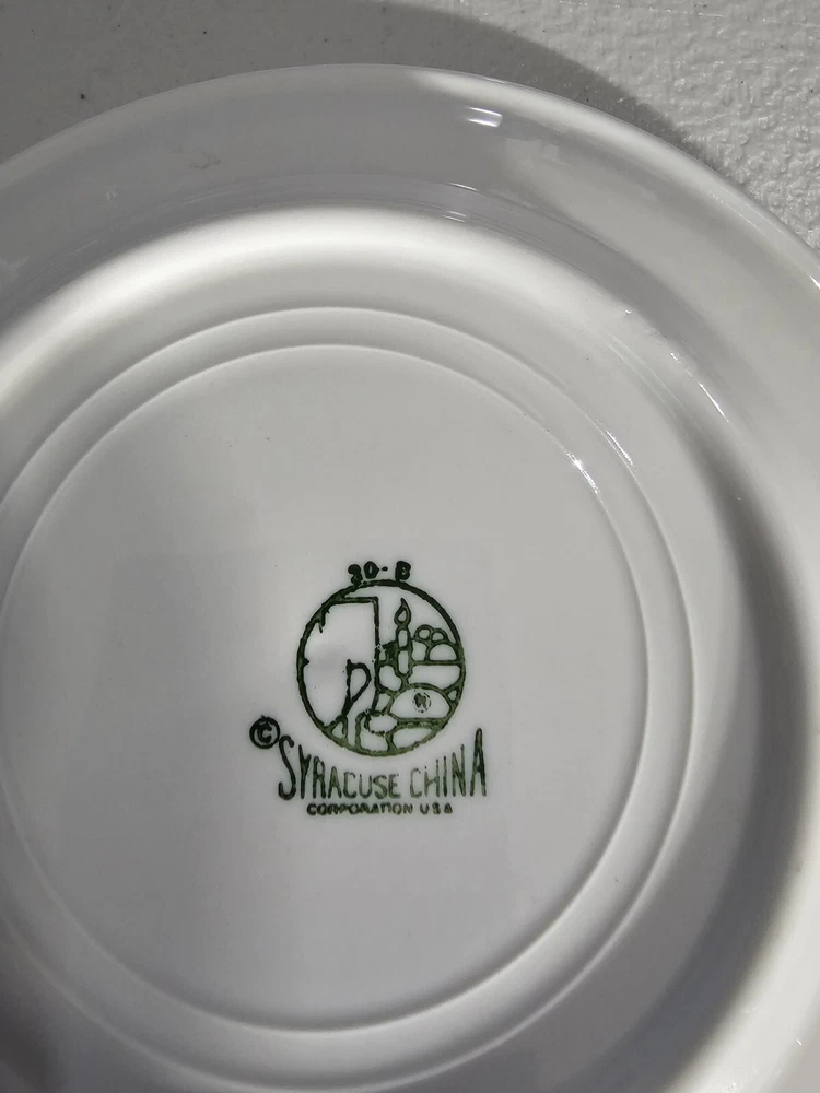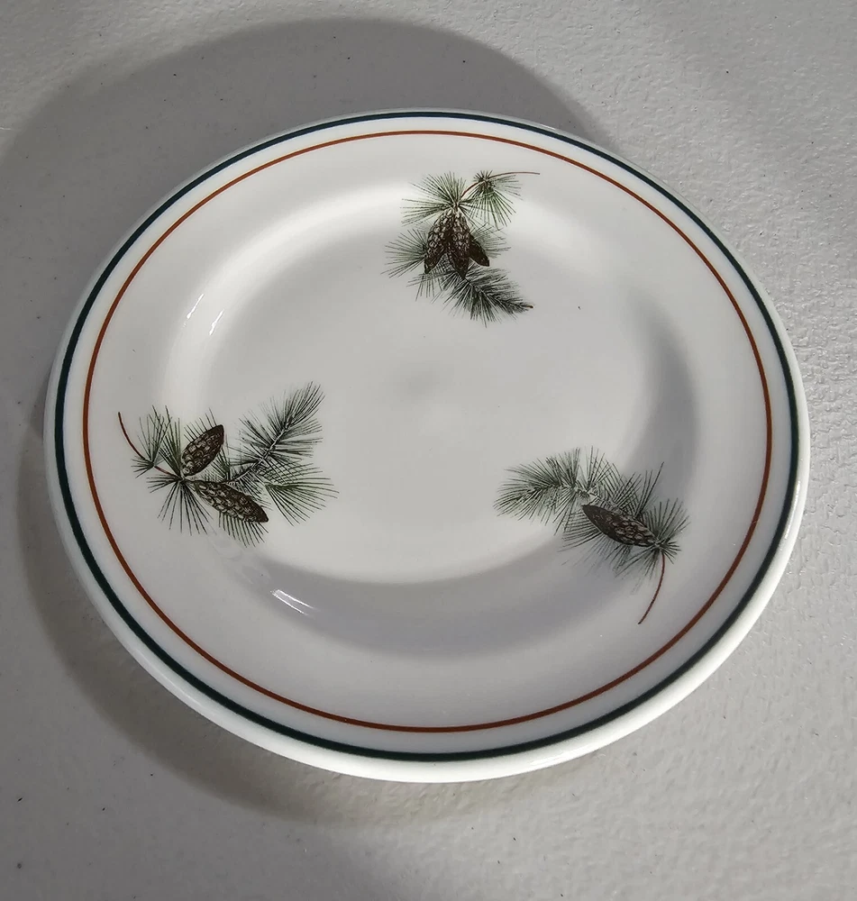 Syracuse China 6 1/4" bread plate in the Lake Placid - Pinecone pattern. I don't know how old this is. It is a nice restaurant ware type of china. I have 10 of these available. This listing is for one plate. You can choose to check what quantity you want to buy. All in excellent condition. I am also listing dinner plates, sauce bowls, and cups and saucers in this pattern. Returns accepted within 30 days in same condition as purchased. Buyer pays return shipping. Shipping USPS ground. I'm sorry I have to increase the cost of shipping. I just shipped out the first couple pieces of this china. Going to the East coast was almost double what I had charged. I will refund any amount that is above the actual shipping.