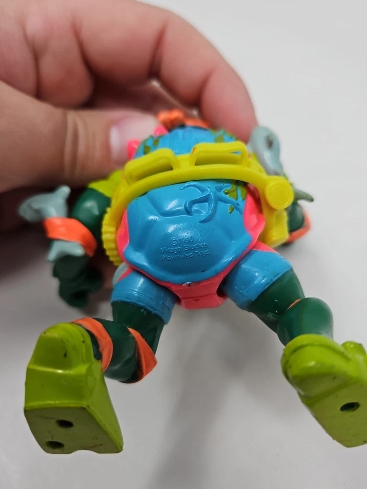 Character: Michelangelo, Mike Sewer Surfer Packaging: Without Packaging Type: Action Figure Time Period Manufactured: 1990-1999 Theme: TV, Movie & Video Games Genre: Movie & TV Vintage: Yes gtin13: Does not apply TV Show: Teenage Mutant Ninja Turtles Animal Species: Turtle Franchise: Teenage Mutant Ninja Turtles UPC: Does not apply Item Height: 4 in Scale: 1:16 Original/Licensed Reproduction: Original Material: Plastic Year Manufactured: 1990 Brand: Playmates Toys