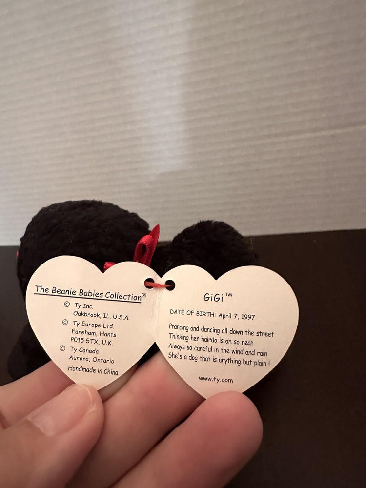 This vintage TY Beanie Babies GiGi Poodle plush toy animal is a must-have for any collector or fan of the iconic brand. With its adorable design and high-quality materials, it is sure to bring joy to anyone who receives it. The plush toy is made by Ty, a trusted and well-known brand in the world of toys and hobbies. The GiGi Poodle is part of the original Beanie Babies collection and has been retired, making it a rare and valuable find. It features a cute and cuddly design that is perfect for children and adults alike. Whether you are looking to add to your own collection or give it as a gift, this TY Beanie Baby is sure to please.