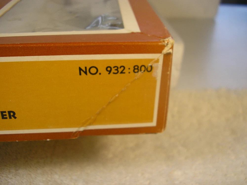 Offering this vintage TYCO #932:800 HO scale Operating Boom Crane & Maintenance Tender car set. I have the original box in P6/VG condition with corner wear and 1 small tear (see PIC close-up). No literature. The boom car has the interchangeable knob for raising/lowering the boom and the hoist. It is missing the original hoist hook, so I added an old lead coupler part (all I had that looked like a kook). The maintenance car has the smoke stack broken off. Otherwise the cars look to be in EX condition. Make sure you check the “See Details” in the SHIPPING COST line for your best shipping cost option. I can email additional pictures if necessary. Please be specific about what you want to see. PLEASE ASK QUESTIONS BEFORE BUYING/BIDDING. Check out my other listings by clicking on See other items . I will gladly combine shipping, if possible, on multiple purchases to save you shipping $$$’s. PLEASE DO NOT PAY BY INDIVIDUAL INVOICE IF YOU BUY MORE THAN ONE ITEM. IF YOU BUY AN ITEM AND PLAN ON BUYING ANOTHER ITEM, JUST LET ME KNOW. I WILL HOLD YOUR ITEMS UNTIL YOU ARE FINISHED. THEN LET ME KNOW YOU ARE READY TO PAY AND I WILL SEND YOU A COMBINED INVOICE WITH THE SHIPPING DISCOUNT. DO NOT PAY THE EBAY GENERATED INVOICE. IT WILL ONLY CAUSE PROBLEMS. GOOD COMMUNICATION ON BOTH SIDES WILL HELP TO ASSURE A GREAT TRANSACTION.