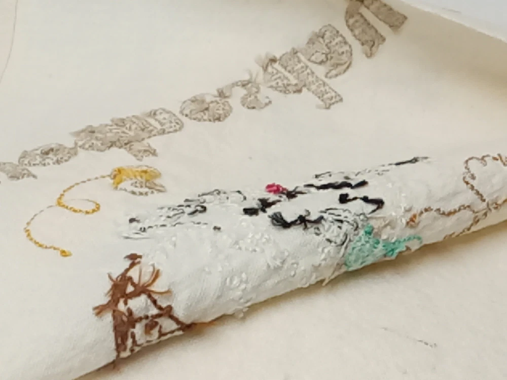 Vintage Cross Stitch & Crochet Lace Tablecloth - Handmade Floral Embroidery