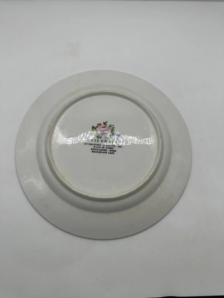 gtin13: Does not apply Pattern: VICTORIA Department: Adults MPN: N/A Theme: ROSES Color: IVORY WITH PINK ROSES Time Period Manufactured: 1990-1999 Brand: TableTops Unlimited Set Includes: Plate Set UPC: Does not apply Shape: Round Original/Reproduction: Contemporary Original Antique: No Product Line: VICTORIA Original/Licensed Reproduction: Original Handmade: No Seller Notes: “In great shape” Style: Eclectic Vintage: Yes Backstamp: Printed Type: Chop Plate Country/Region of Manufacture: China Origin: Unknown Production Style: Art Pottery Custom Bundle: Yes Production Technique: N/A Material: Stoneware Occasion: All Occasions