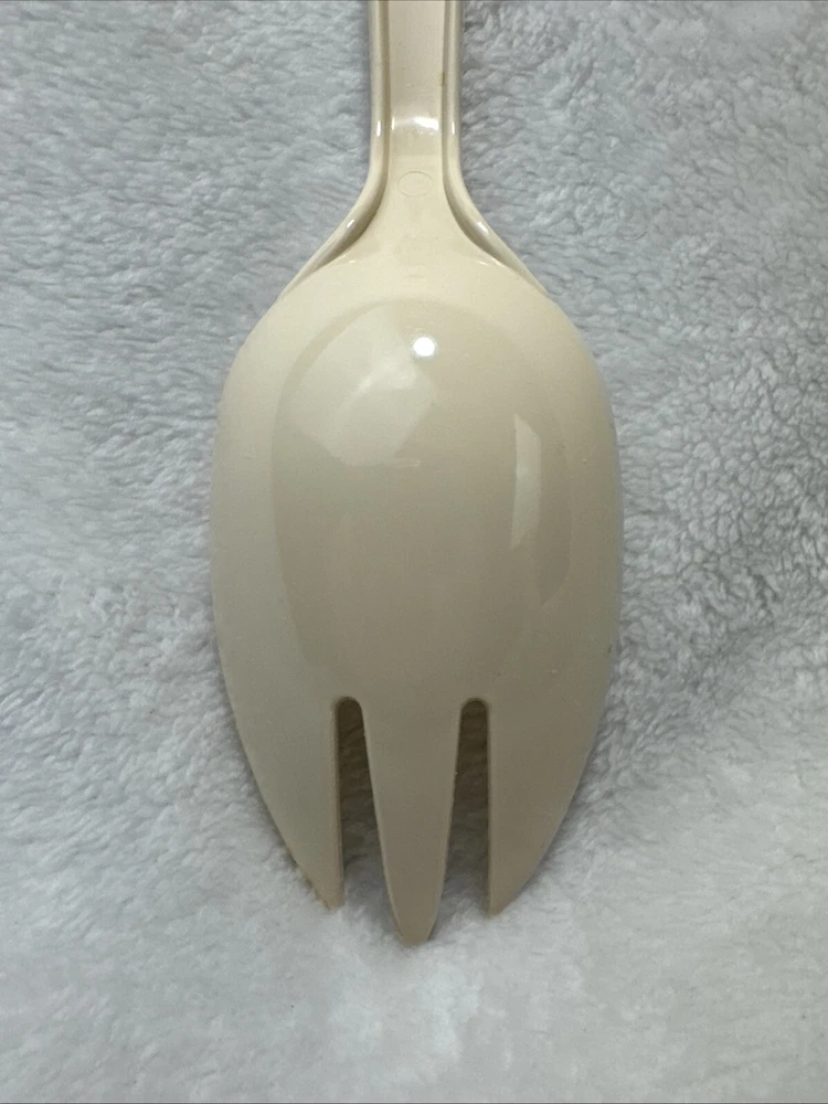 This vintage Tailor Made Products spork serving spoon fork is a unique addition to any kitchen. With an oval shape and almond color, it is perfect for any universal food compatibility. The handle is included and it is made of plastic/nylon material. This original piece was manufactured between 1960-1969 and is a one-of-a-kind item. It is perfect for collectors or anyone looking for a rare kitchen gadget. The set includes one spork and is an excellent addition to any kitchen tools and gadgets collection.
