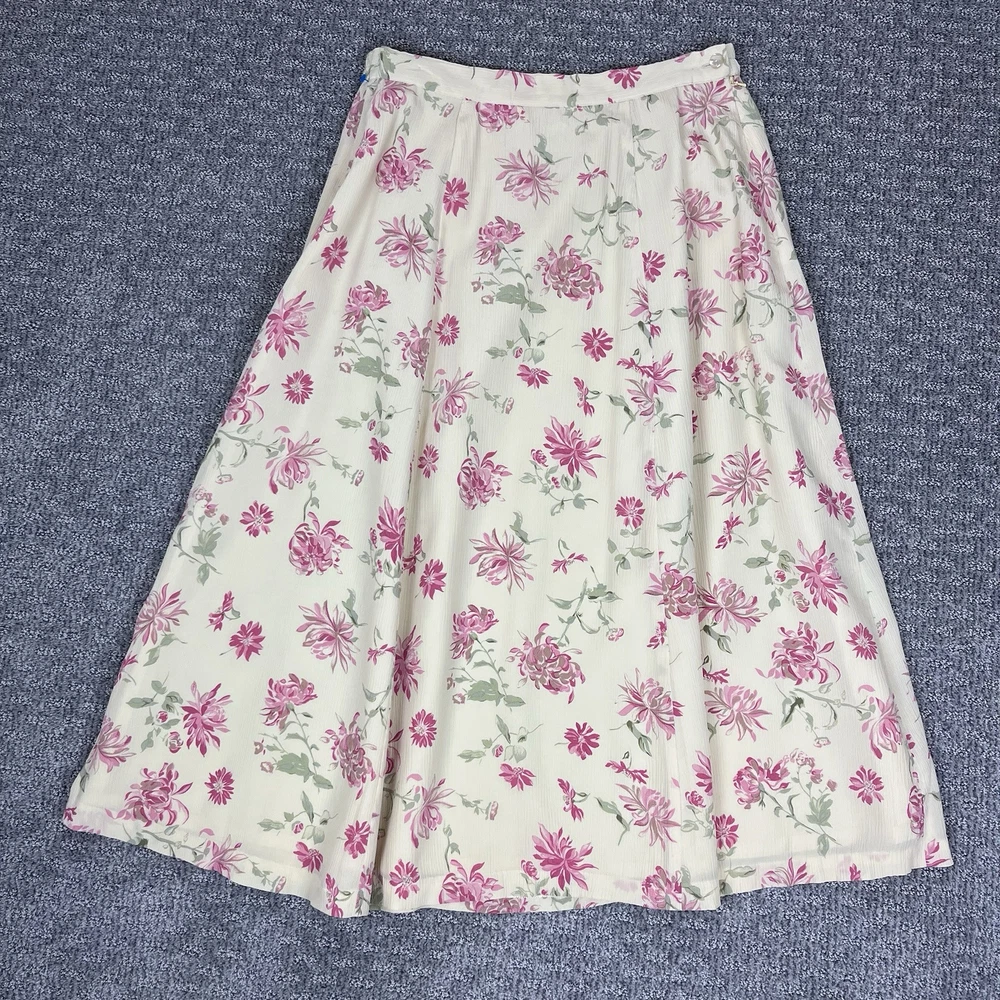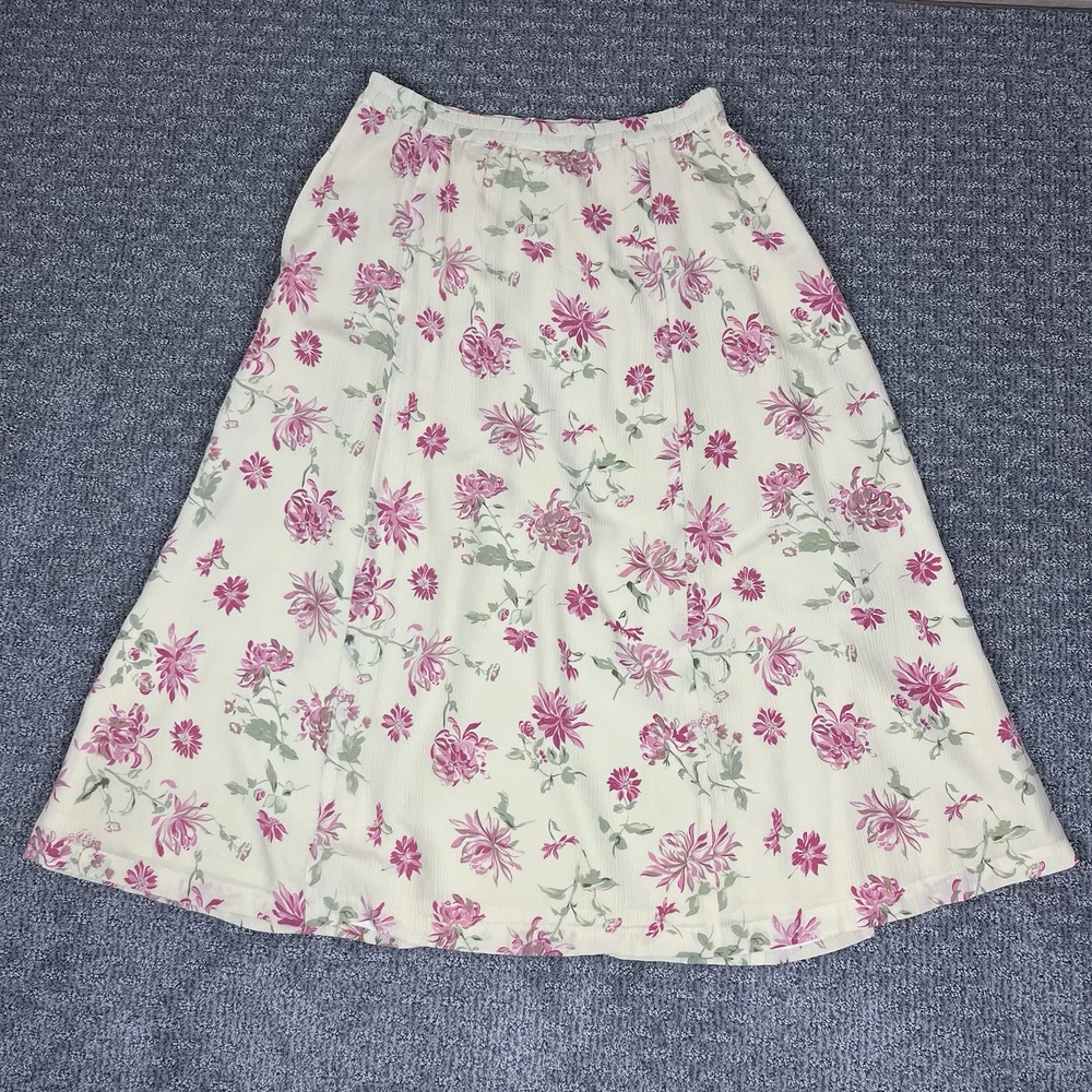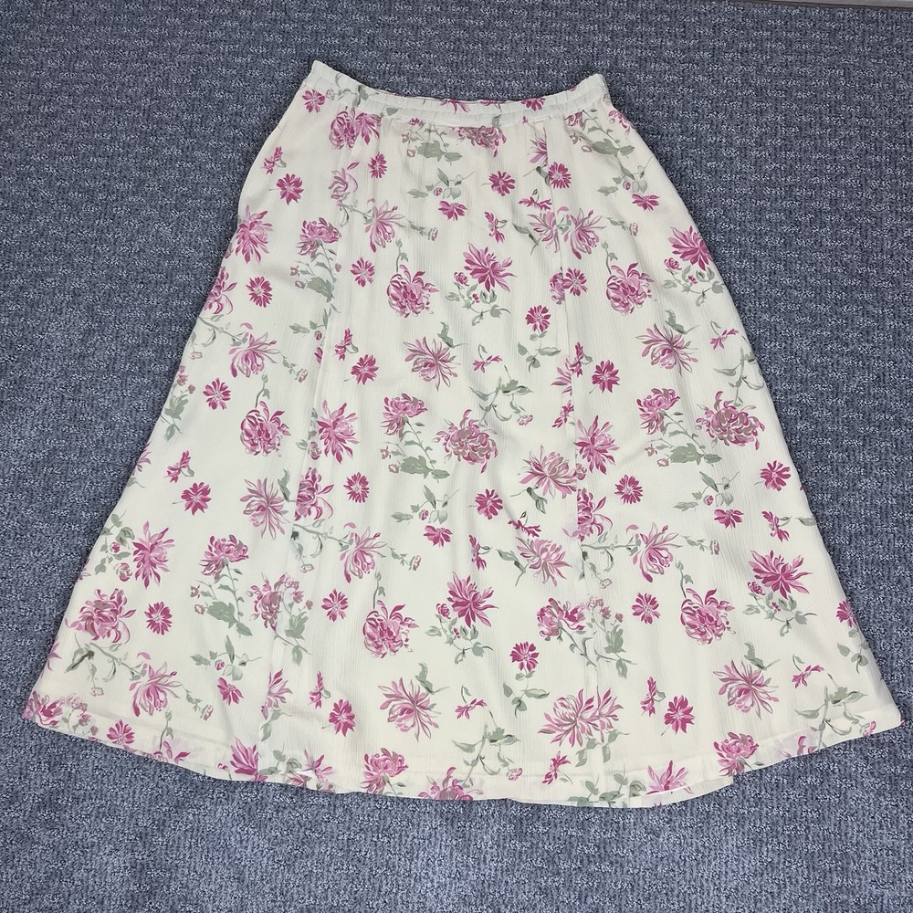 Talbots Womens Skirt Silk Midi length Zipper with button side closure Lined Floral print A line 90s Retro Feminine Cottage Cottagecore Very good preowned vintage condition Measurements in photos Size 12