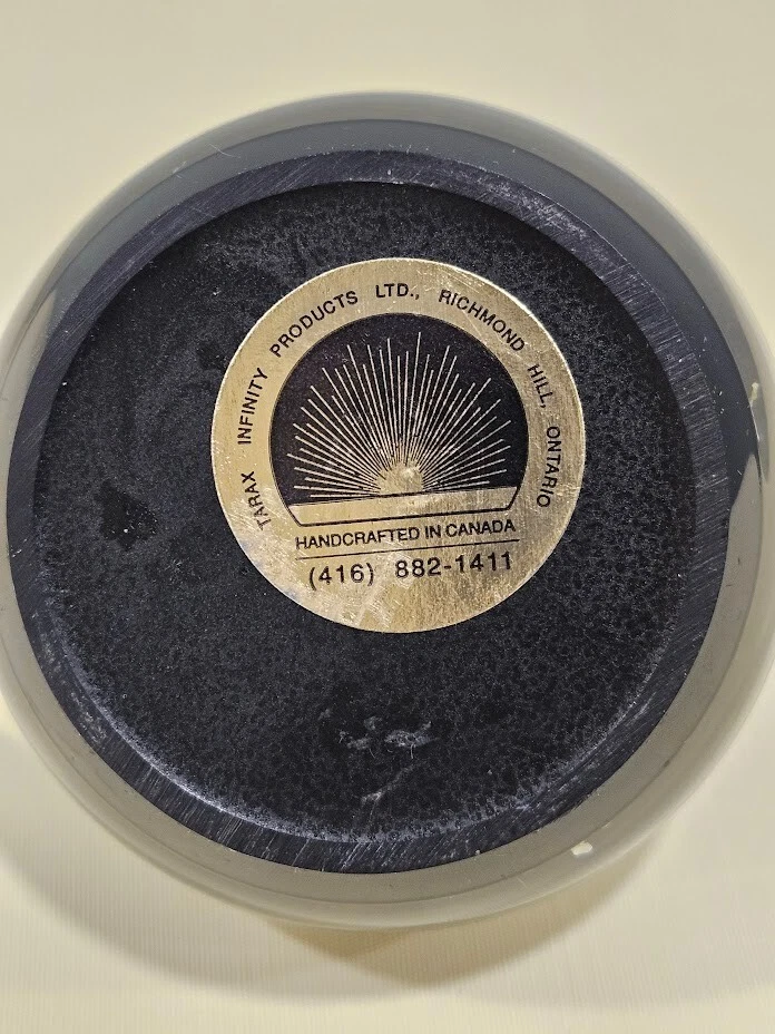 Handmade: Yes Color: Clear & White MPN: 24-06-176 Country/Region of Manufacture: Canada Type: Paperweight, Candle holder Brand: Tarax Material: Acrylic, Lucite Size: about 3.5 in