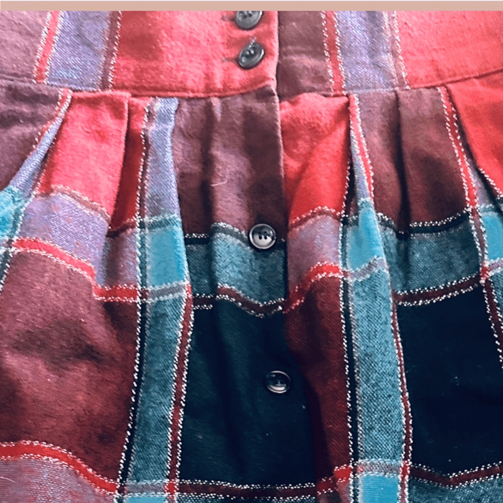 This vintage plaid skirt is a total gem—flattering A-line cut, perfect midi length, and the button-down detail adds such a cute retro touch. The fabric feels sturdy yet comfortable, and the lining makes it easy to wear all day. Love the mix of colors in the plaid—so versatile for styling with sweaters or blouses. Fits true to size, and the quality is amazing for a vintage piece. Definitely a wardrobe staple!