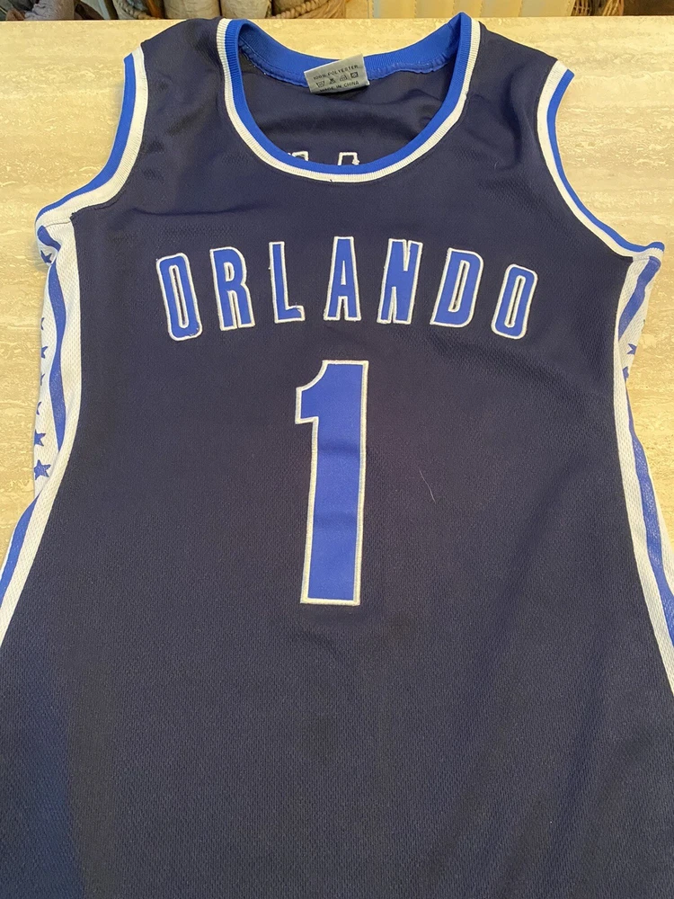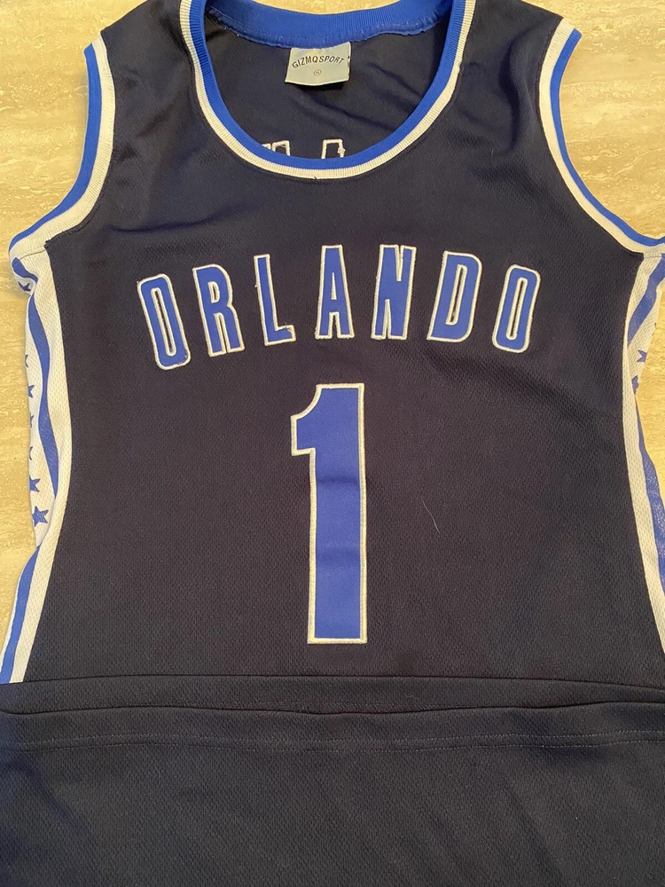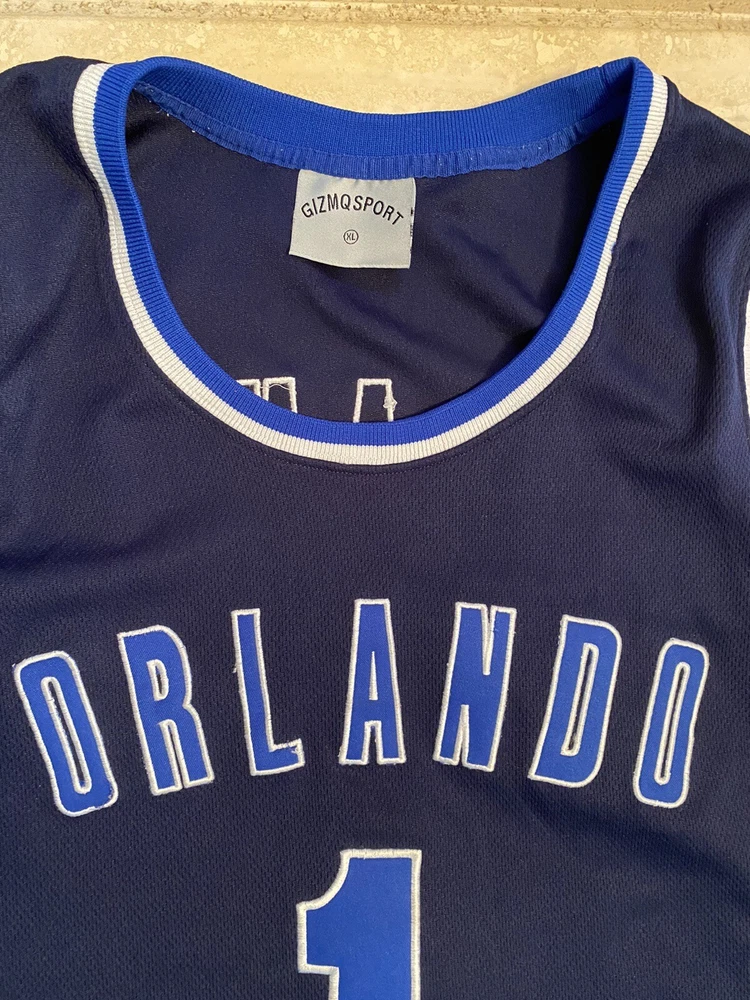 This vintage Orlando Magic basketball jersey is a must-have for fans of Penny Hardaway and the NBA. The black jersey features the player's number 1 and is made by Gizmqsport, an officially licensed brand for sports apparel. The jersey is in great shape and perfect for any basketball fan. The size of this jersey is XL and it is designed for men. The blue color adds a nice touch and the jersey is perfect for wearing during regular season NBA games. The jersey is a great collectible and perfect for anyone who loves vintage sports apparel. Add this to your collection today!