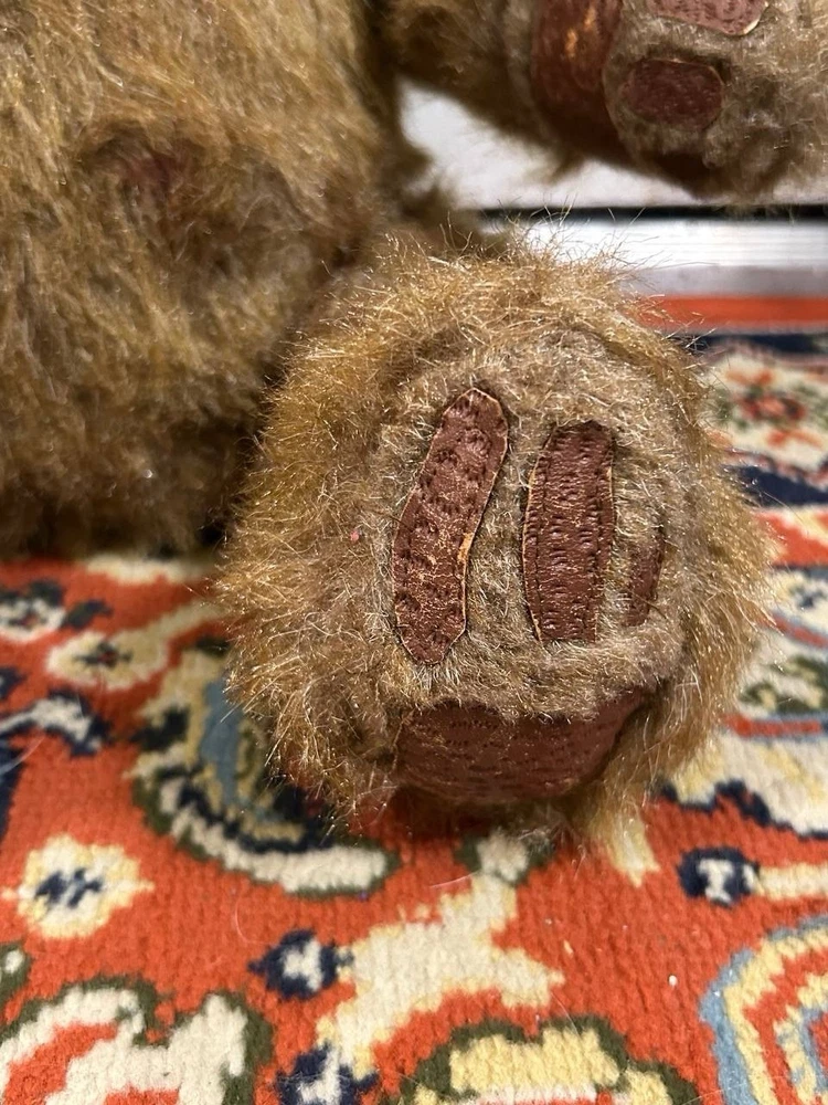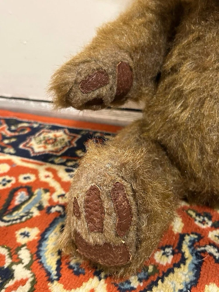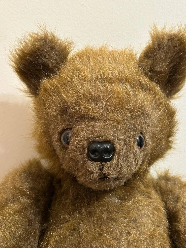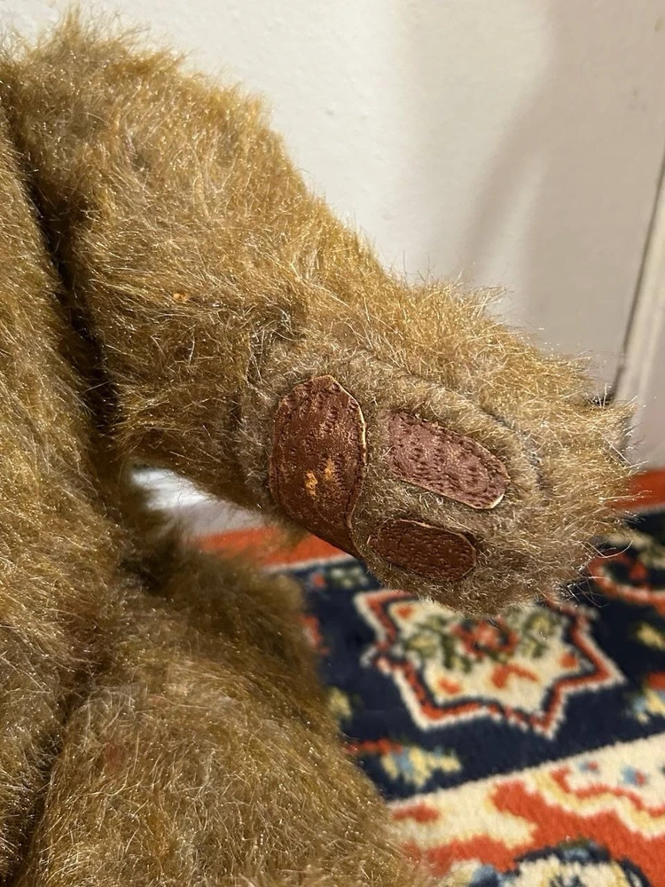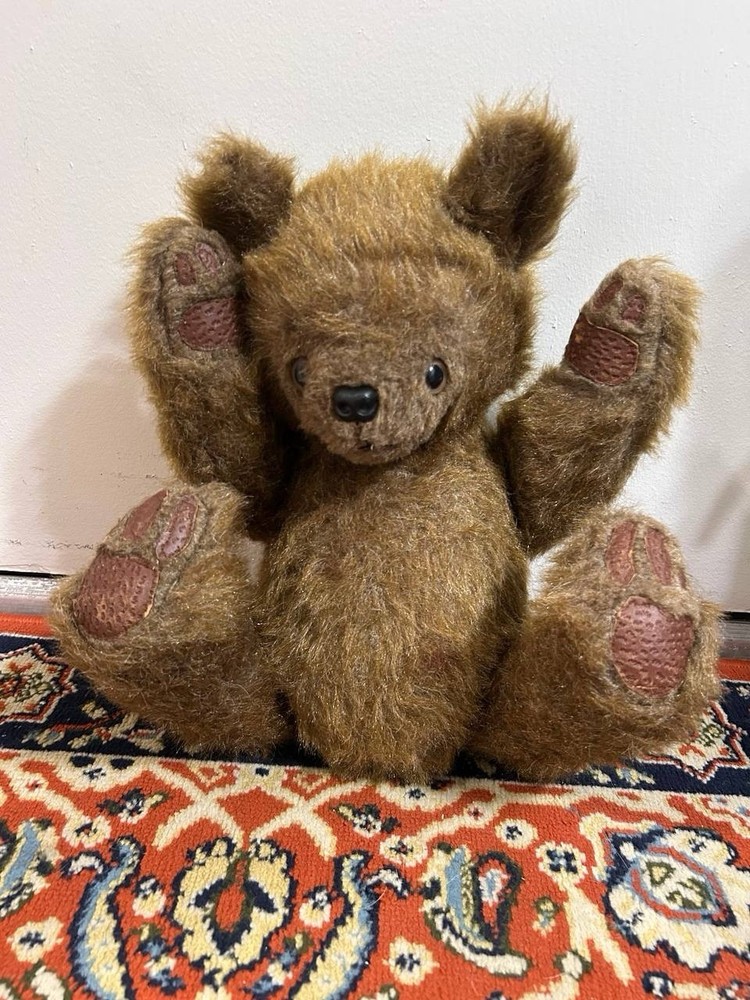 Vintage teddy bear plush in classic brown color. This bear has a well-loved, authentic vintage look with worn fur and visible age, making it perfect for collectors or decorative use. • Color: Brown • Material: Plush / stuffed • Condition: Pre-owned vintage condition with signs of wear (see photos) • Features: Original nose, paw pads, and stuffing intact • No visible brand tag (unknown maker) There is a mechanism inside, but it doesn't work This bear has a unique character and charm that only comes with age. Great for collectors, vintage decor, or restoration projects. Please review all photos carefully for condition details. Sold as-is.