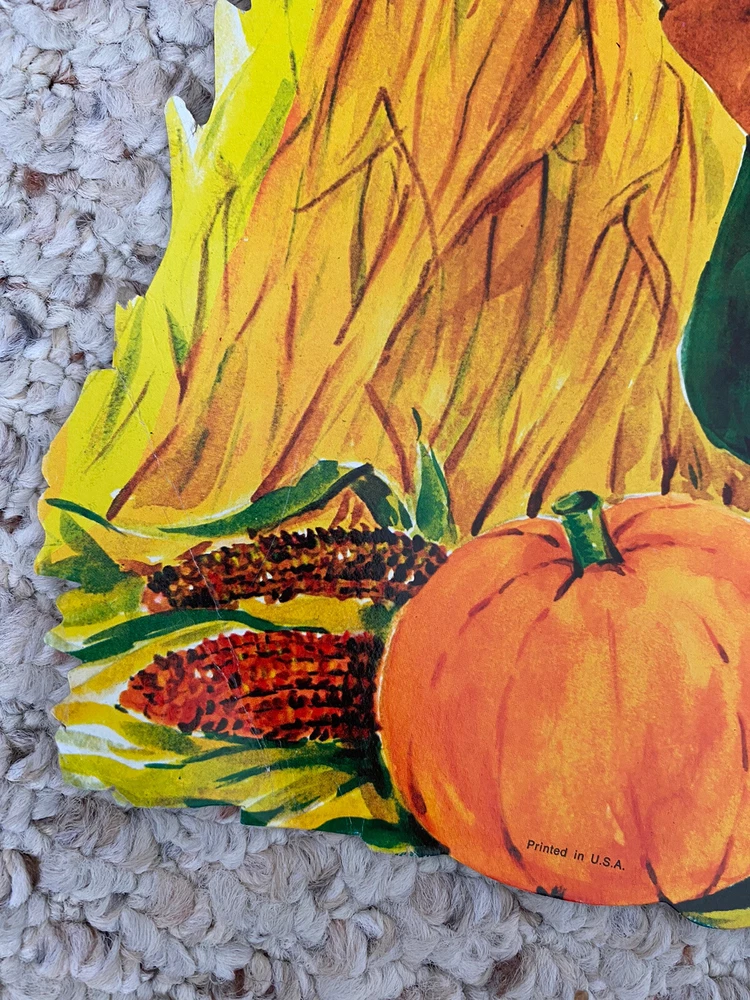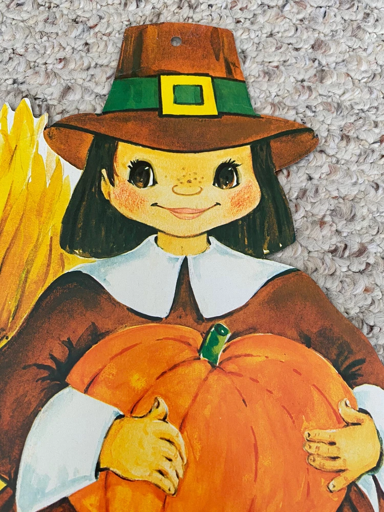 Subject: pilgrim Autograph Format: Cut Material: Cardboard Brand: vintage Finish: Printed Color: Multicolor Pattern: pilgrim Type: Die Cut Collection: Thanksgiving Occasion: Thanksgiving
