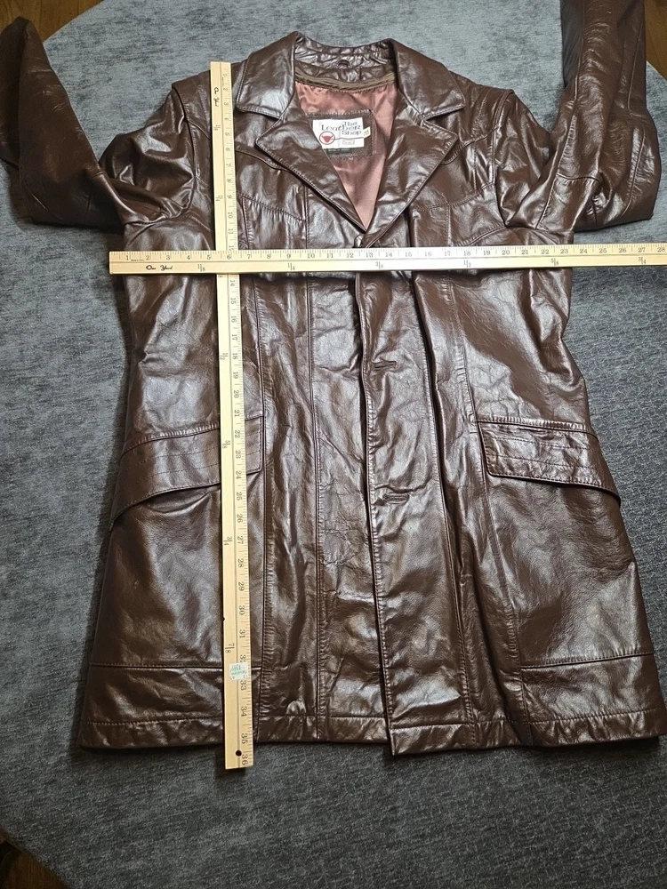 The Vintage The Leather Shop By Sears 44 X-Tall Removable Liner is a stylish and versatile overcoat designed for big and tall men. Made from high-quality leather, this coat features a classic brown color and a chest size of 44 inches. The removable liner adds extra versatility to the coat, making it perfect for layering in various weather conditions. With its timeless style and durable construction, this coat is a must-have addition to any man's wardrobe. 264