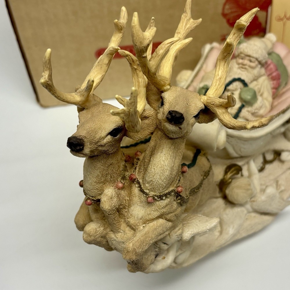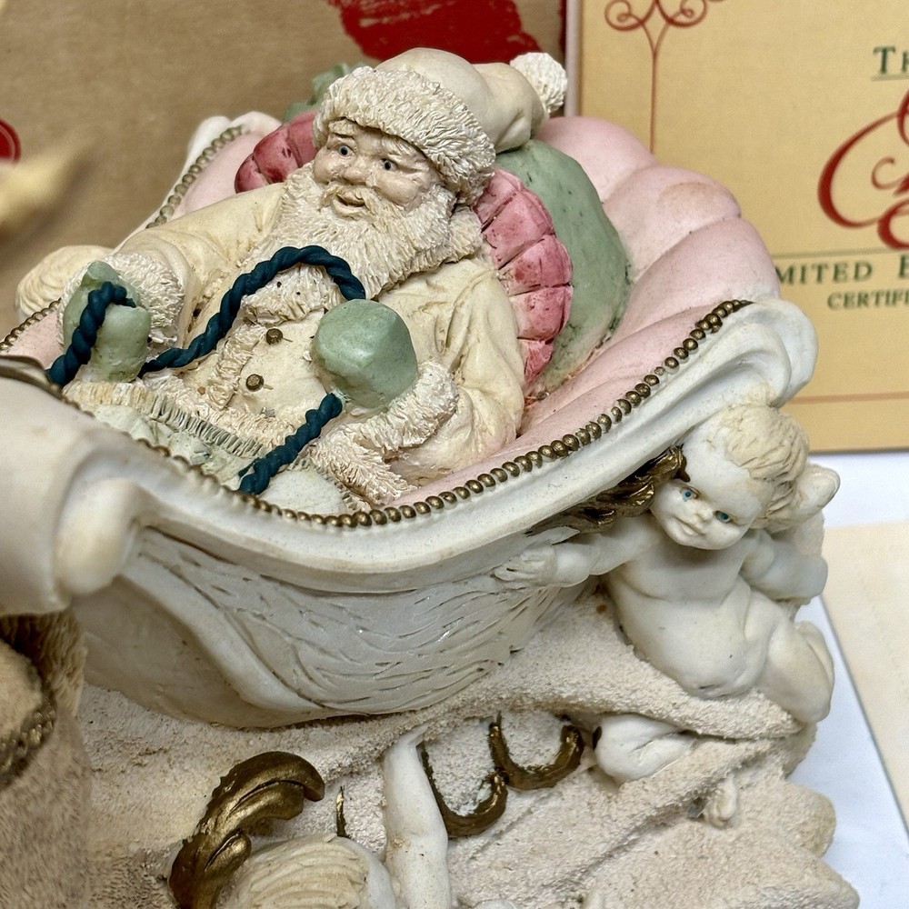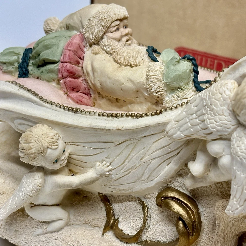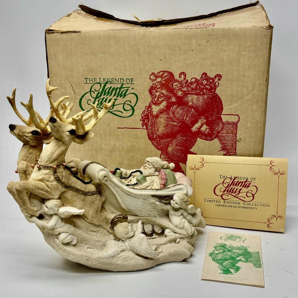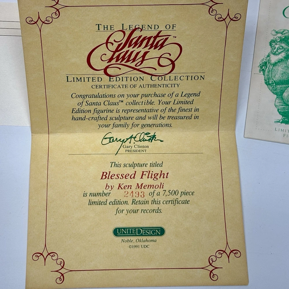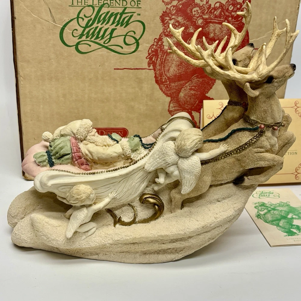 The Vintage The Legend Of Santa Claus BLESSED FLIGHT Limited Ed UDC 1990 by UniteDesign is a sculpture collectors' item that captures the essence of Christmas and holiday spirit. With its detailed craftsmanship and limited edition status, this piece is a unique addition to any festive decor collection. The brand, Legend, adds an air of authenticity and tradition to this beautifully designed figurine, making it a cherished item for those who appreciate vintage holiday memorabilia.