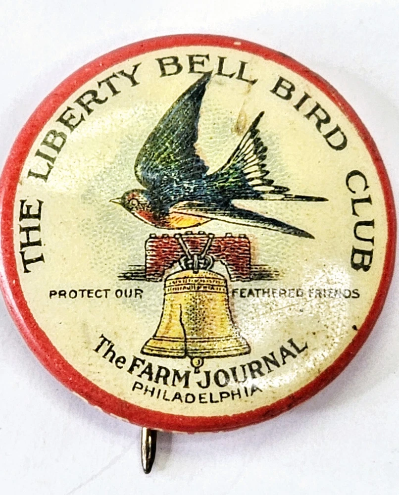 Please review pictures before purchasing to better understand the condition of the item. This is a vintage Liberty Bell Bird Club The Farm Journal Philadelphia, Pennsylvania pinback or button. The piece says, "Protect Our Feathered Friends" on it. The button was made by AJ Keil Co, in the Betz Building. The pin measures 7/8 of an inch in diameter. The pin is in great condition. Perfect for display or as a unique addition to your accessories, this pin is a true gem.