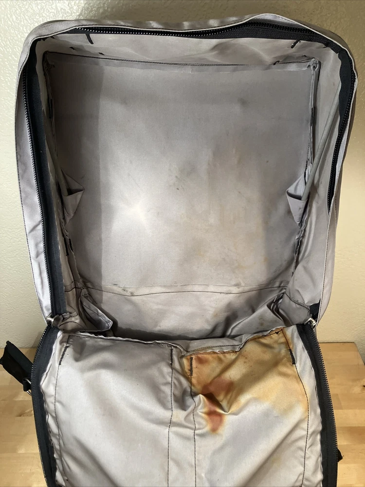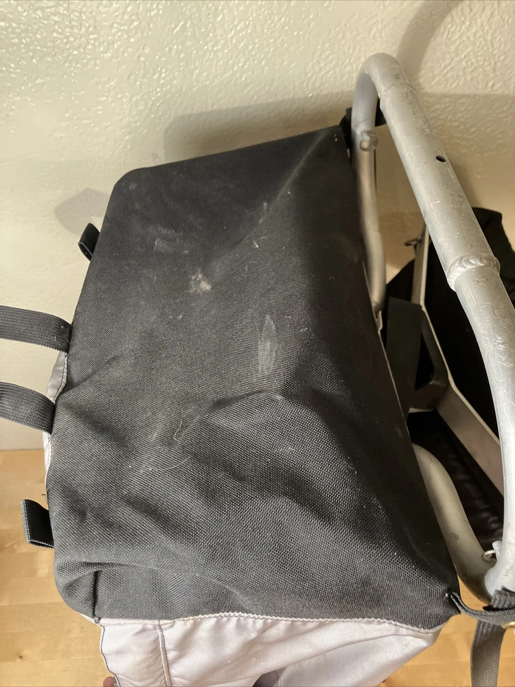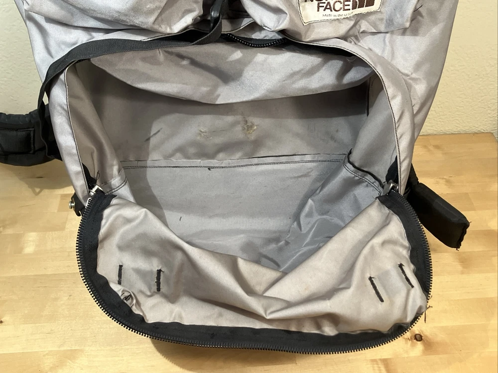 THE NORTH FACE Vintage Brown Label External Frame Hiking Backpack Marked Size: L Pre-owned. See photos for condition details. No rips or tears. One large stain, maybe iodine from a first aid kit. No bends or dents in aluminum rack observed. Zippers, waist belt and all clips/straps in excellent working order. To upcycle, I reuse shipping material as often as possible. Buy more from my store and save on shipping.