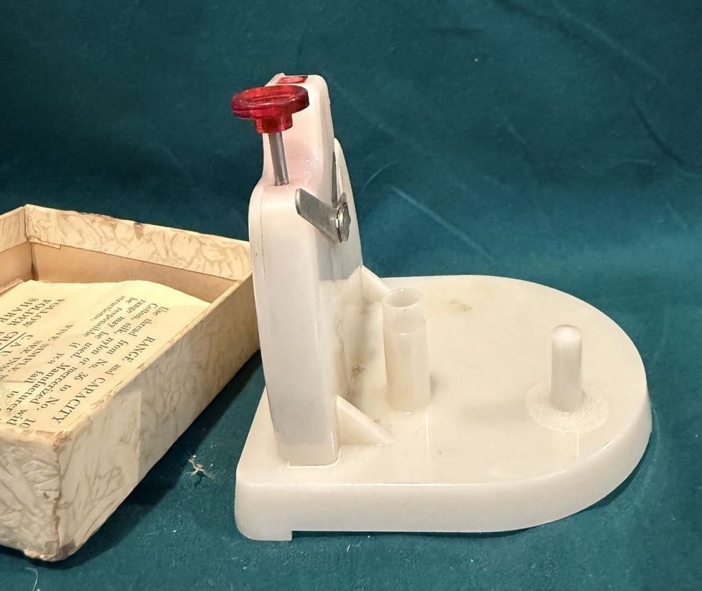 The Vintage Thread-a Matic Model 72 Jewel Needle Threader is a unique sewing accessory that allows for easy threading of needles, perfect for those who enjoy hand sewing or crafting. This modified item comes with its original box and is suitable for various needle types. The box is not in great shape but it is the original box. The brand, Thread-a Matic, adds a touch of nostalgia to this practical tool, making it a desirable piece for collectors or those looking for a reliable needle threader for their sewing projects.