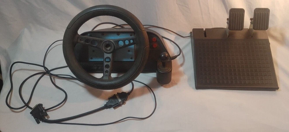 - Please Read Description! Important! - Vintage Thrustmaster Formula T2 Steering Wheel/Shifter Set (with add-on pedals) for PC One suction cup (three suction cups remaining) missing from steering wheel/shifter set.
