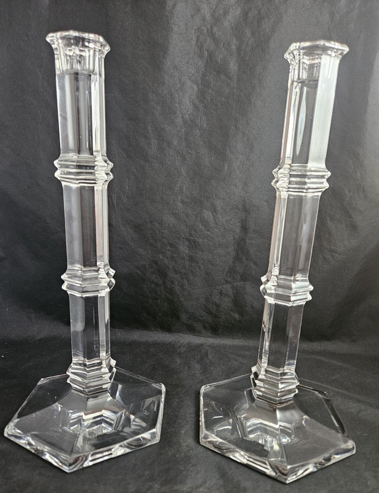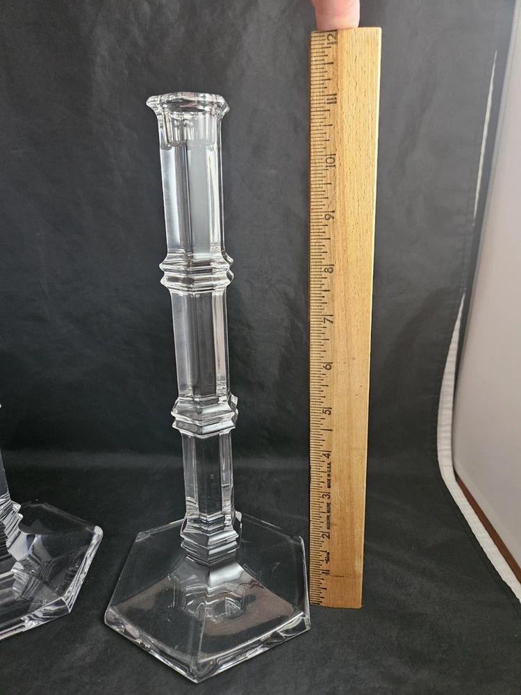 Vintage Tiffany & CO. Windham Two 11 In Tall Crystal Candlestick Holders Retired In excellent pre-owned vintage condition. There are no chips, cracks or repairs. Please see pictures for details and measurements as they are part of the description.