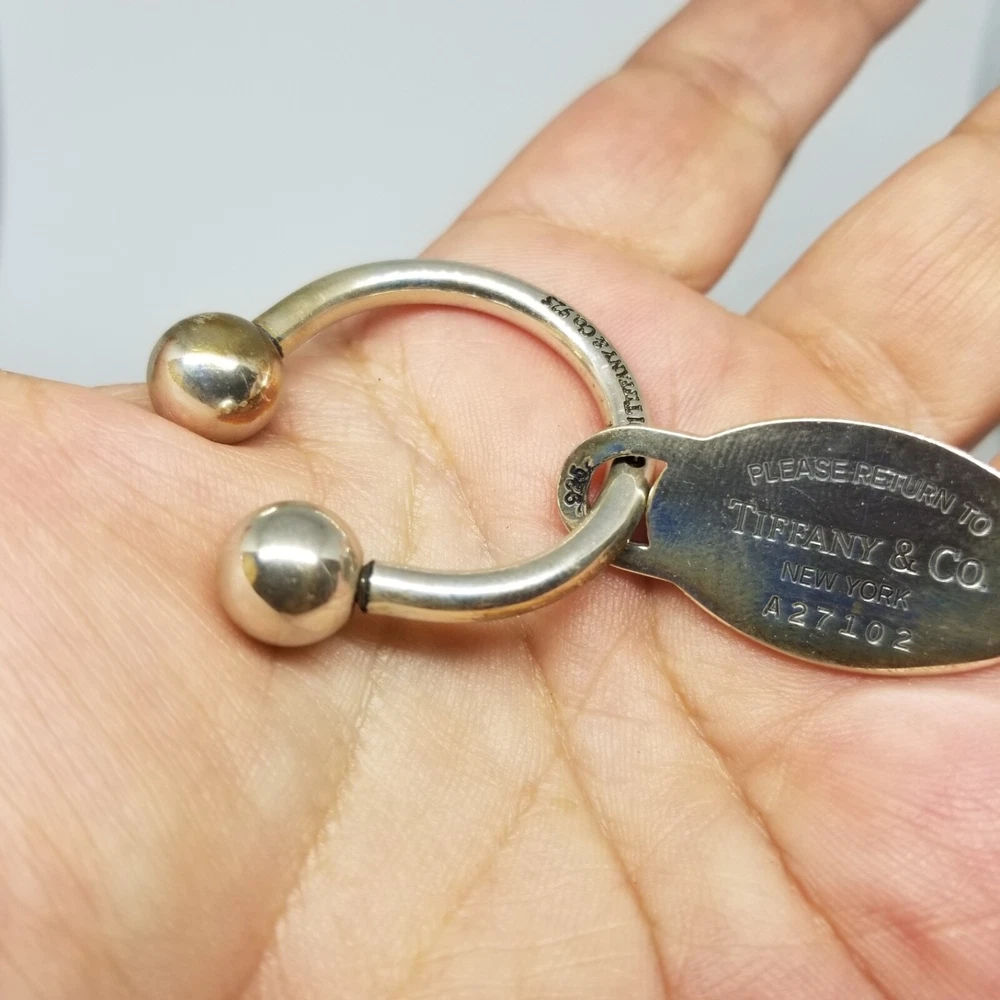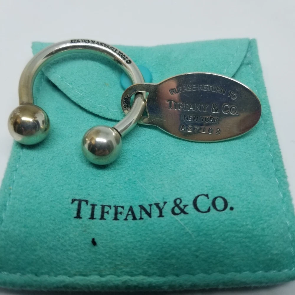 This vintage Tiffany & Co. key ring features a charming round key charm made of sterling silver with a metal purity of 925. The design is part of the Tiffany Keys collection. Not sold by Tiffany any longer. Tag reads: Please return to Tiffany & Co. New York. A27102
