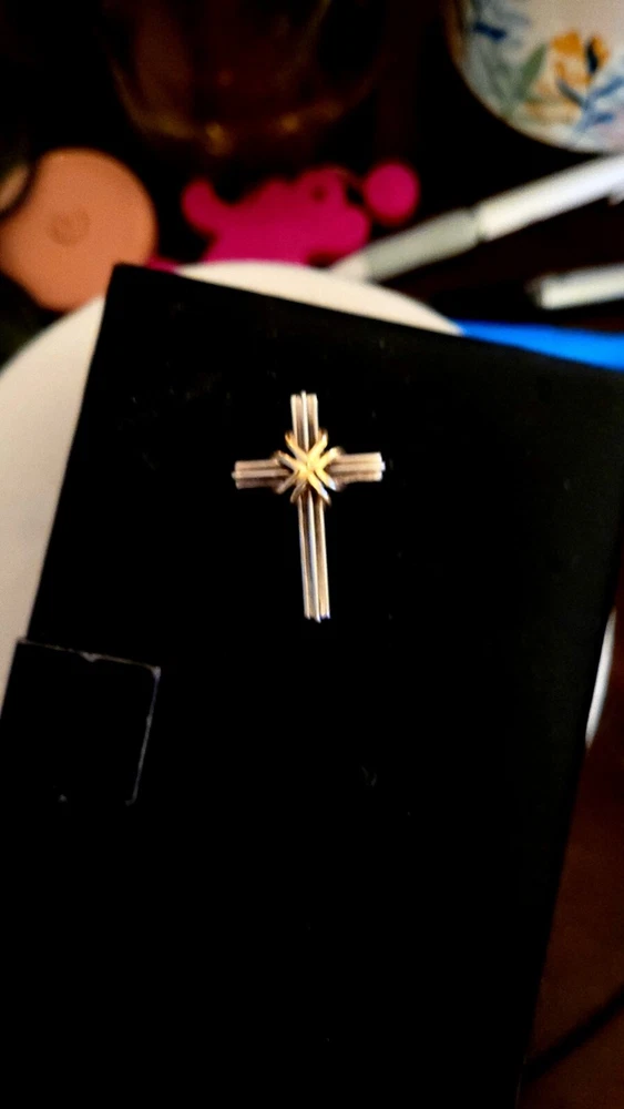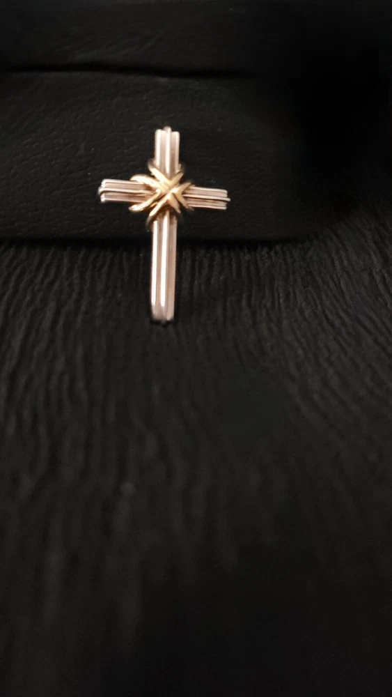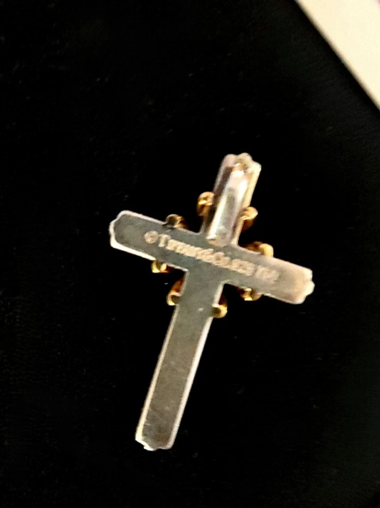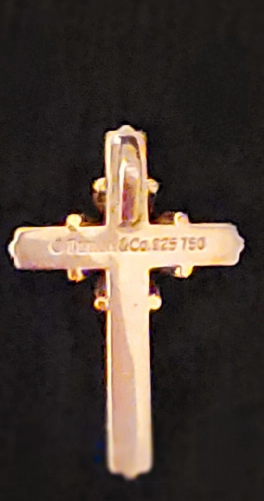Add a touch of elegance to your outfit with this stunning vintage Tiffany & Co. cross pendant. Crafted from high-quality sterling silver and 18K gold, this beautifully designed pendant boasts a sleek silver finish with subtle gold accents. The pendant shape is a classic cross, making it a perfect accessory for anyone looking to add a touch of sophistication to their outfit. The pendant is part of the Tiffany & Co. collection and features no stones, making it a perfect accessory for anyone who prefers a minimalist style. This cross pendant is a must-have for anyone looking for a high-quality, stylish accessory that will last for years to come. Pendant does not come with box or bag. Good luck