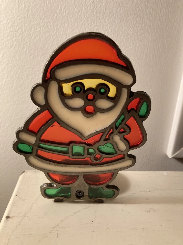 Vintage Tiffany Style Candle Holder Christmas Santa Stained Glass