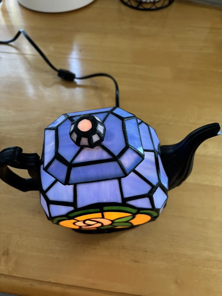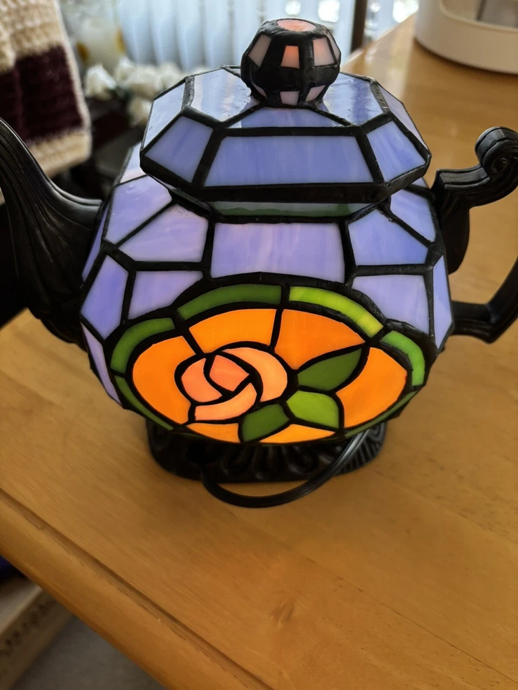 Beautiful stained glass Tiffany style lamp. Floral tea pot design.