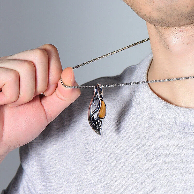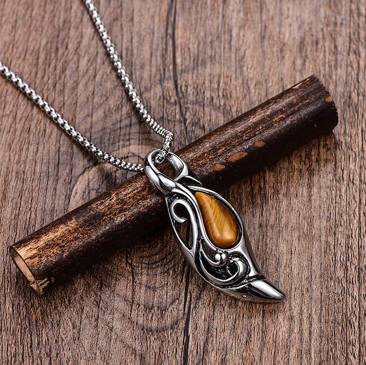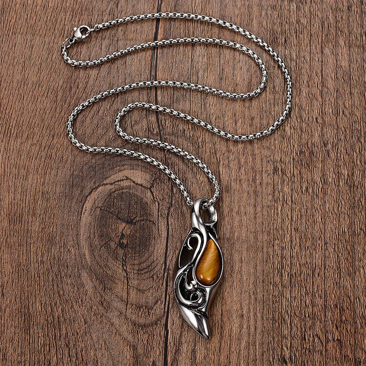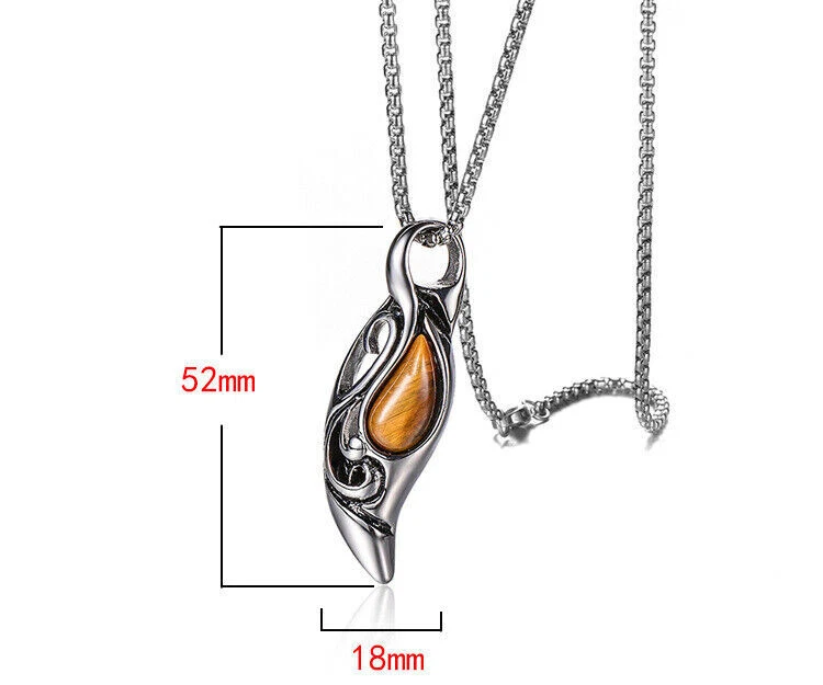 Brand: Cy trendy Material (Pendant): 316L Stainless Steel Material (Chain): 316L Stainless Steel Stone: Tiger eye Pedant size: 52mm*18mm Chain length: 60cm Total Weight: 26g We offer high quality rings and necklaces, We use GENUINE 316L Stainless Steel as material, The 316L stainless steel do not suffer corrosion,tarnish or rust when expose in wet environment, it is one of the best metal when choosing rust resistance rings and necklaces because of it's sufficiently reactive to protect itself from further attack by forming passive corrosion product layer Package include : 1 x necklace