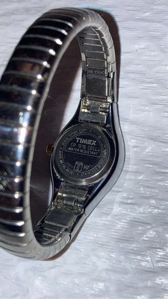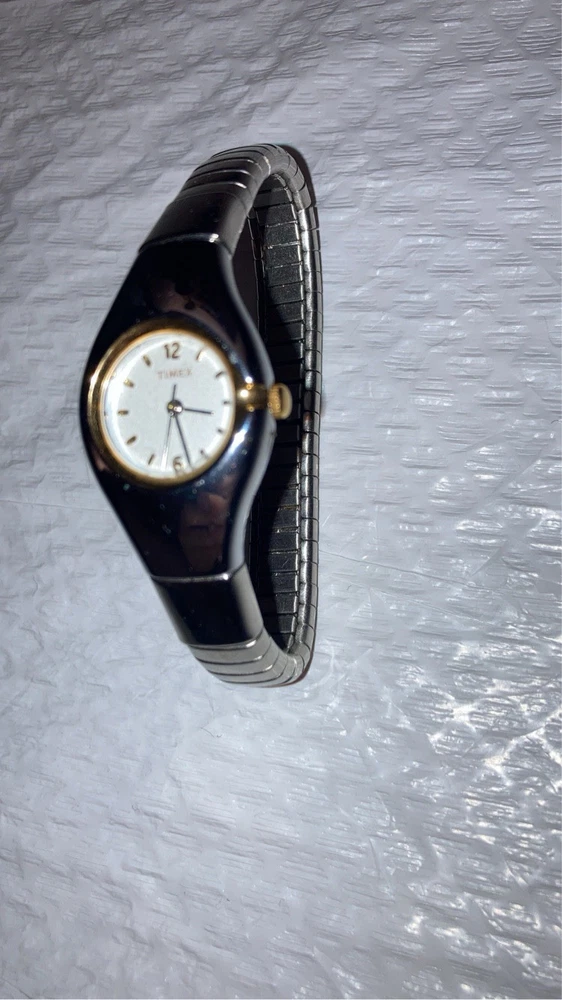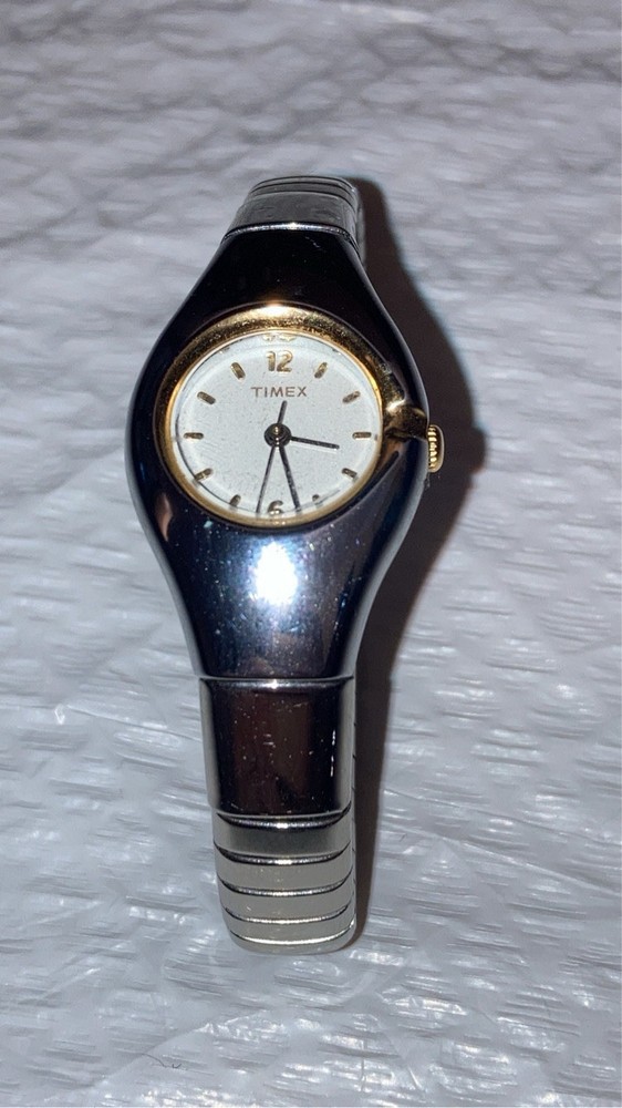 The product is a Women's Timex Vintage Two Tone Watch with a stretch band. It is designed specifically for women and features a classic and stylish vintage look. The two-tone color scheme adds a touch of elegance, while the stretch band ensures a comfortable and secure fit on the wrist. The Timex brand is known for its quality and reliability in the watch industry, making this timepiece a fashionable and functional accessory for everyday wear. Condition untested looks great vintage find