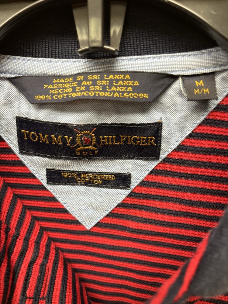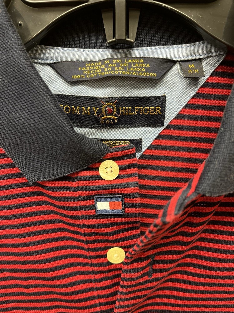 Vintage Tommy Hilfiger Golf Polo Navy Blue/Red Striped Men’s Medium Preppy