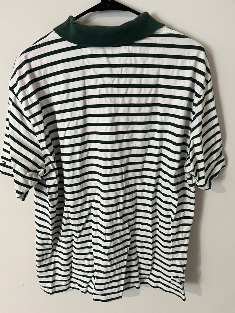 Vintage Tommy Hilfiger Men's White & Green Striped Polo Shirt Size XL