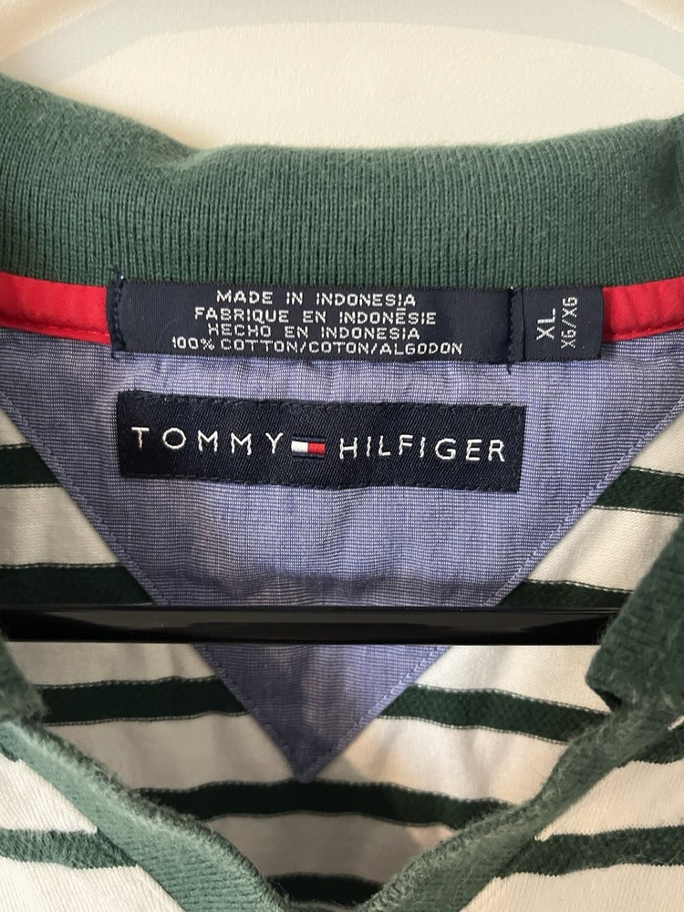 Fit: Regular Accents: Logo, Embroidered Neckline: Collared Type: Polo Size: XL Size Type: Regular Features: Easy Care, All Seasons Material: 100% Cotton Vintage: Yes Garment Care: Machine Washable Personalize: No Sleeve Length: Short Sleeve Color: Green Closure: Button Handmade: No Performance/Activity: Golf Brand: Tommy Hilfiger Pattern: Striped Department: Men