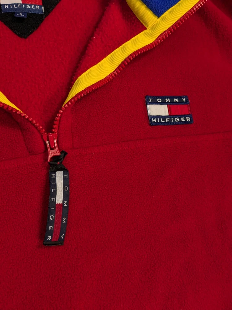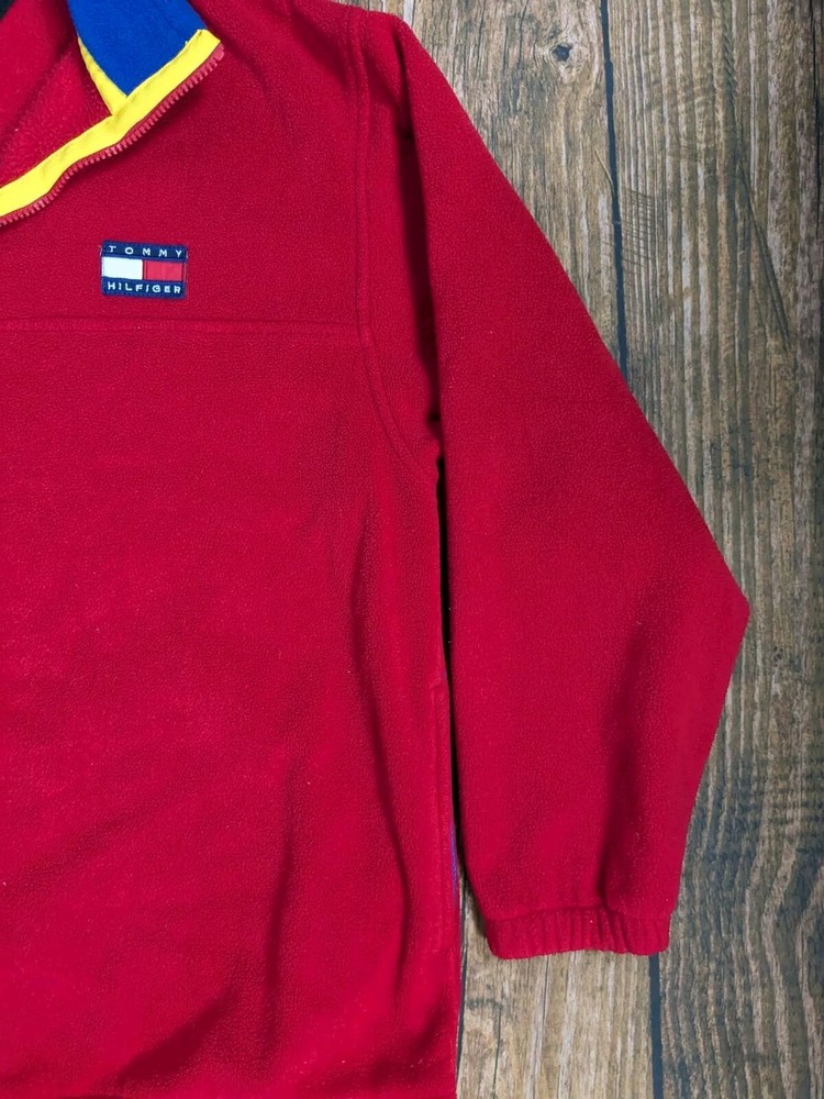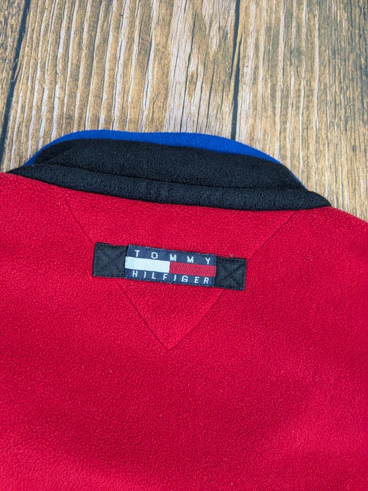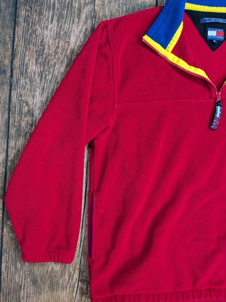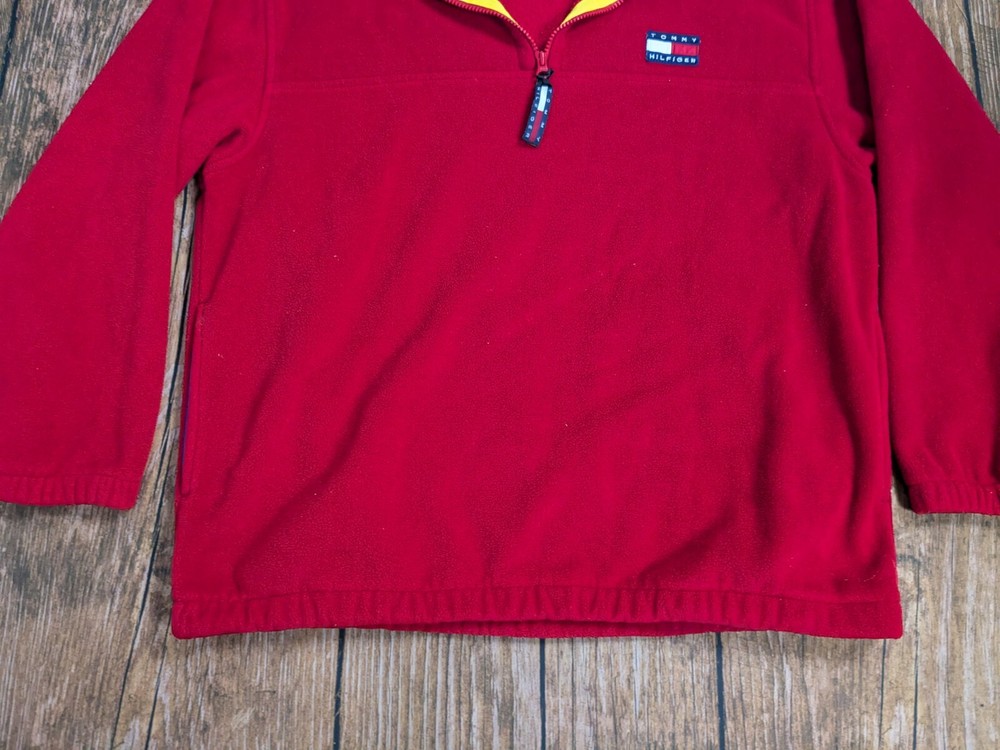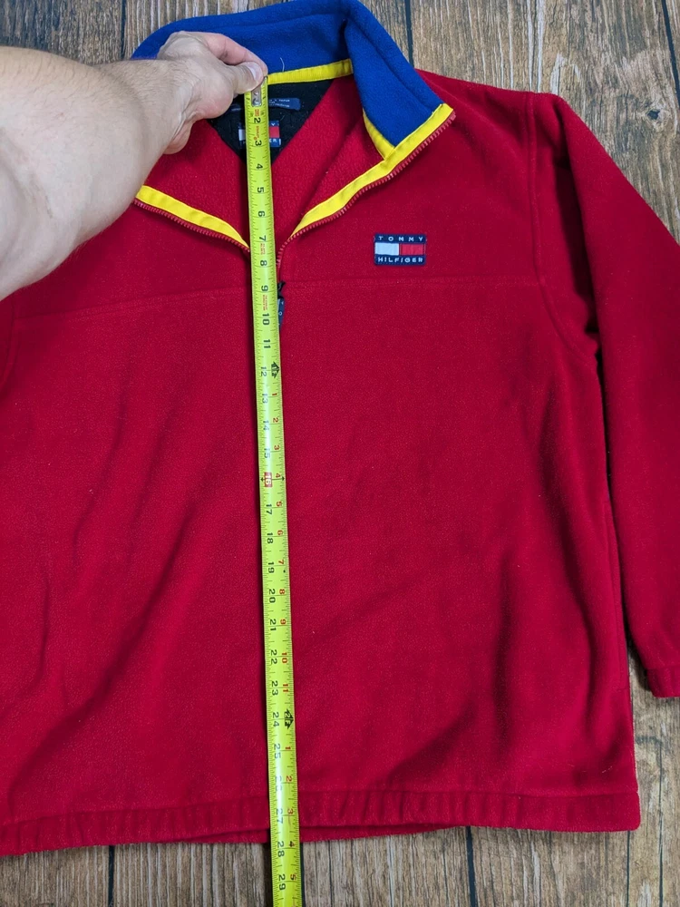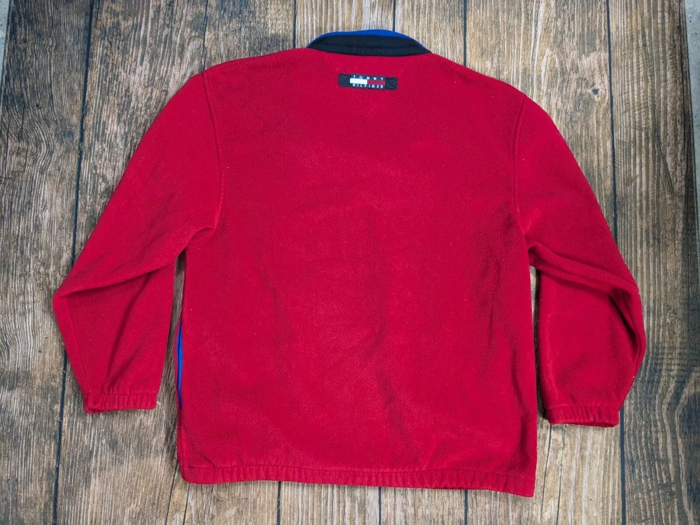 $ 13.2Vtg Old Navy Fleece Pullover Men's XL Red Navy 1/4 Zip Sweatshirt Y2K Spell Out