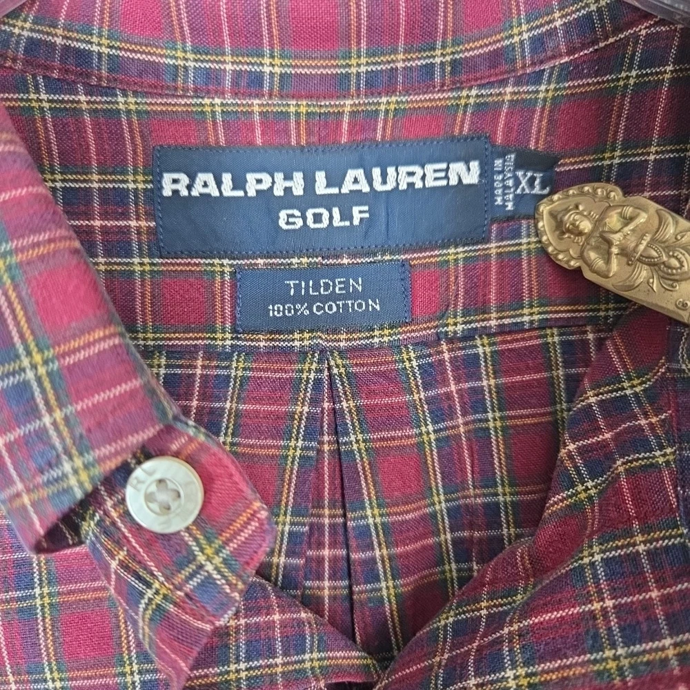 Description: π Brand: Tommy Hilfiger Golf π Size: Menβs XL π¨ Color/Pattern: Red plaid (Tilden style) π Style: Casual dress shirt β perfect for golf or daily wear π§΅ Material: 100% Cotton β soft, breathable fabric π§Ί Care: Machine washable π Made in Malaysia π°οΈ Era: Vintage π Condition: Used β see photos for condition details π Perfect For: Classic casual looks, golfing, vintage collectors