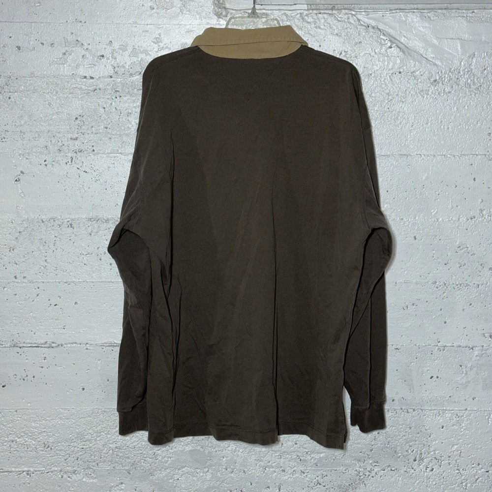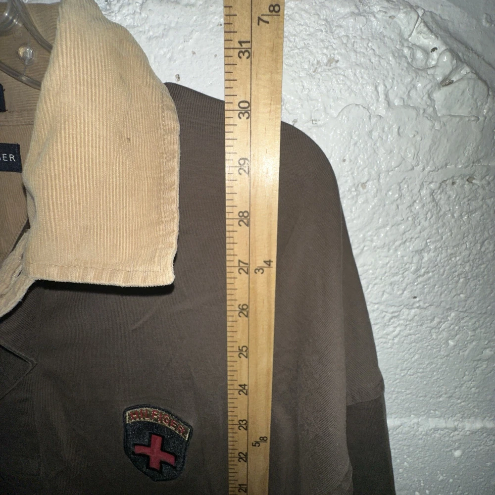 This vintage Tommy Hilfiger rugby polo shirt is a must-have for any fan of classic 90s sports fashion. The solid red color with embroidered logo accents makes it perfect for activewear, casual outings, or even business attire. With a relaxed fit and collared neckline, this shirt is made from comfortable cotton knit fabric that has been medium washed. The long sleeves and button closure add to its versatility, making it suitable for all seasons. The shirt is sized 2XL for a regular fit, and it is not personalized. The fabric type is knit, and it was made in Sri Lanka. The shirt is pre-owned but in excellent condition.