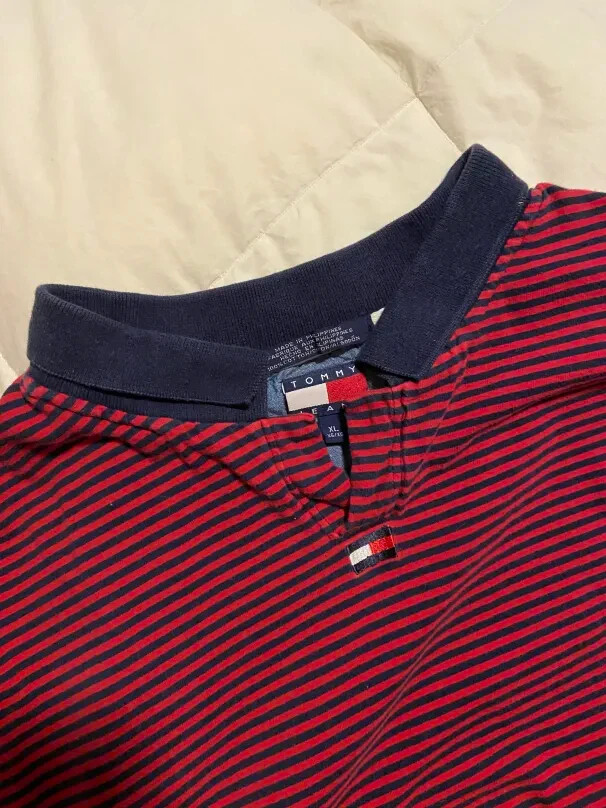Type: Polo Vintage: Yes Sleeve Length: Short Sleeve Size Type: Regular Brand: Tommy Hilfiger Pattern: Striped Department: Men Color: Red Theme: Preppy Size: XL