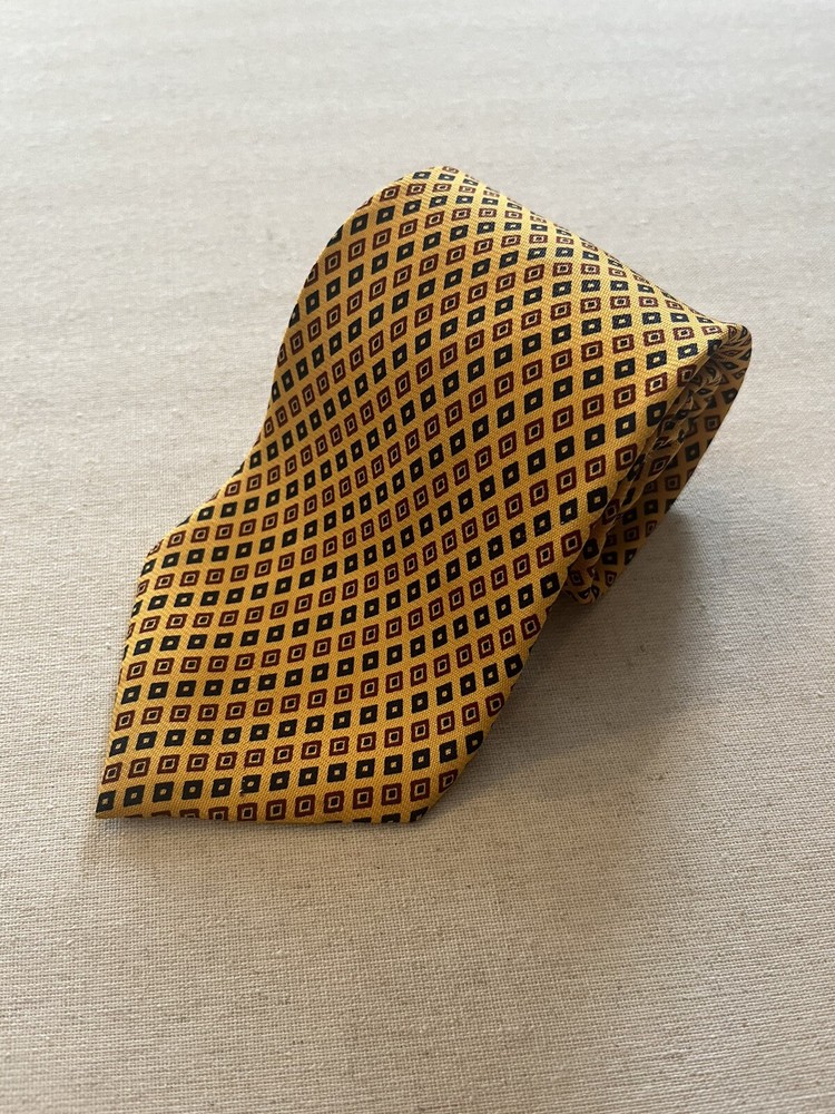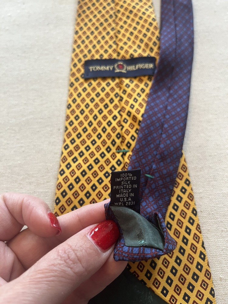 Vintage Tommy Hilfiger Tie Silk Yellow Geometric Blue And Red. Condition is Pre-owned. Shipped with USPS Ground Advantage.
