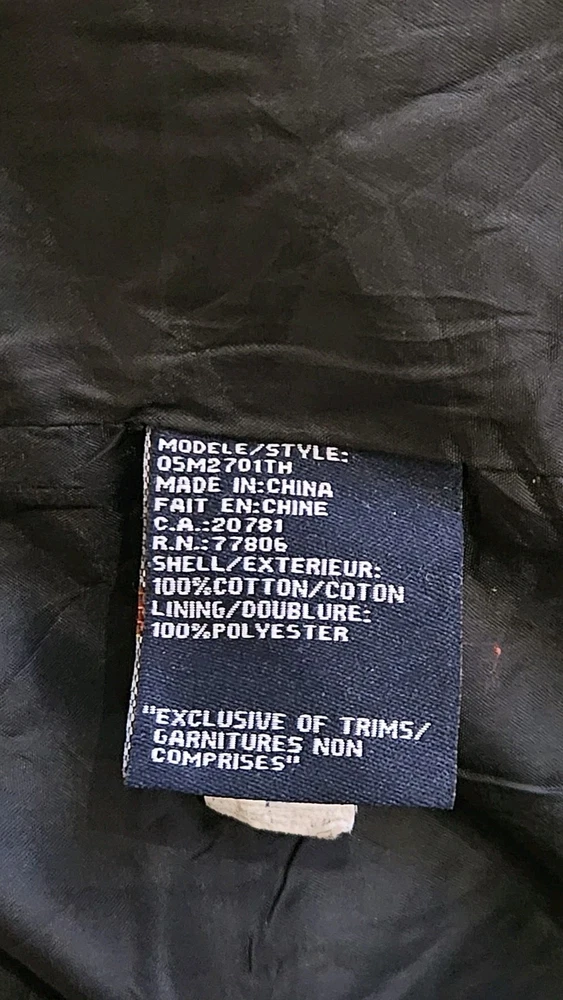 In good condition for age with signs of wear, fading and some markings. No damage or staining that I can see but any issues returns are accepted Size on the tag says large but please check the measurements below 22'' pit to pit 31'' in length approximately 26'' shoulder to end of cuff 20'' shoulder to shoulder Cotton outer Polyester lining