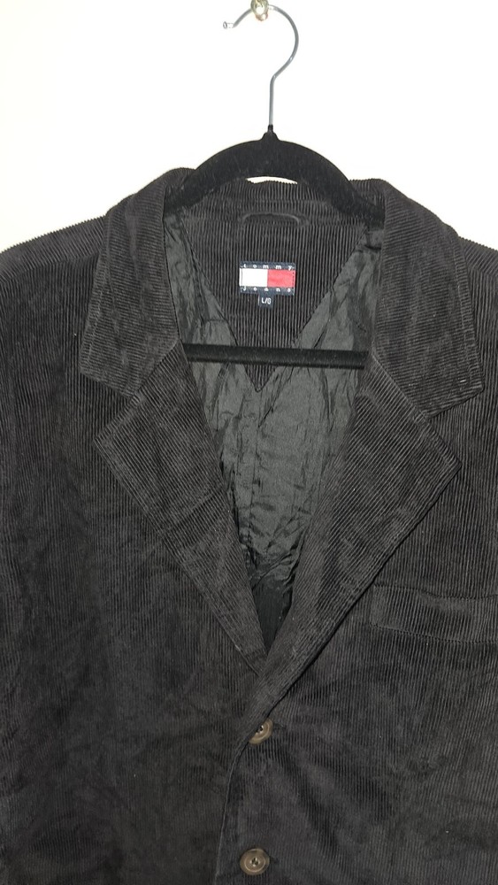 Vintage Tommy Jeans Black Corduroy Jacket Blazer Size Large 90s Cotton Polyester