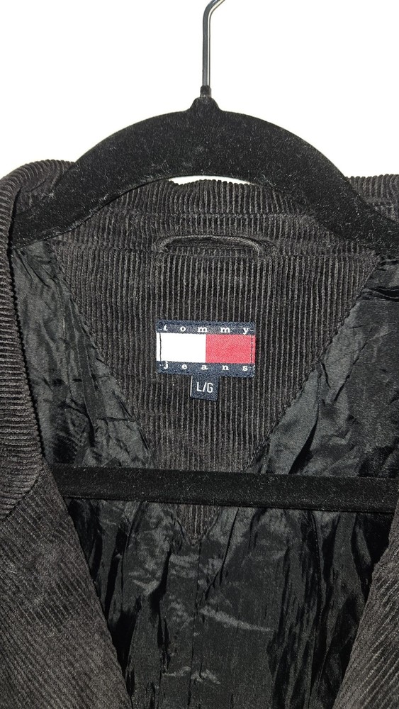 Occasion: Casual Model: tommy jeans Garment Care: Machine Washable Features: Lined Fabric Type: Corduroy Vintage: Yes Chest Size: 44 in Country of Origin: China Personalise: No Jacket/Coat Length: Mid-Length Type: Jacket Colour: Black Fit: Regular Pattern: No Pattern Outer Shell Material: Cotton Insulation Material: Polyester Size Type: Regular Performance/Activity: Walking Brand: Tommy Jeans Season: Autumn, Winter Theme: 90s Closure: Button Lining Material: Polyester Style: Overcoat Size: L Accents: Button, Logo Department: Men