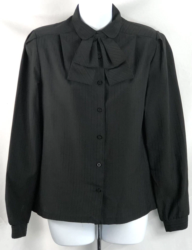 Vintage Career Top Blouse 8 Blk Puff Sleeve Removable Collar Bow Retro Classic Chest 36 " (underarm seam to seam x2) Length 23 " (front shoulder to hem) Excellent Fashion Gem Fast shipping , same or next business day with tracking number for confirmation Thank you Questions? Please let me know I answer questions promptly Have a great day! WalkupandDeal offers great deals on previously loved items....... We inspect each garment for any flaws the item may have: missing buttons,holes,spots,tears or pilling. Our suppliers are carefully selected, so we only offer items that are in Great with minimal wear ,excellent,nearly new or New with tags condition. Information on each item can be found in the "item specifics" tab, including: Size, measurements,fabric content and care instructions. Our faculty is a non smoking environment and each item is laundered & steamed prior to listing and shipping. We strive for every customer to be happy with their items and as always offer a "return for any reason" policy...... ..... Thank you for shopping with us!!!